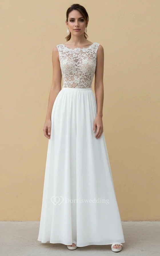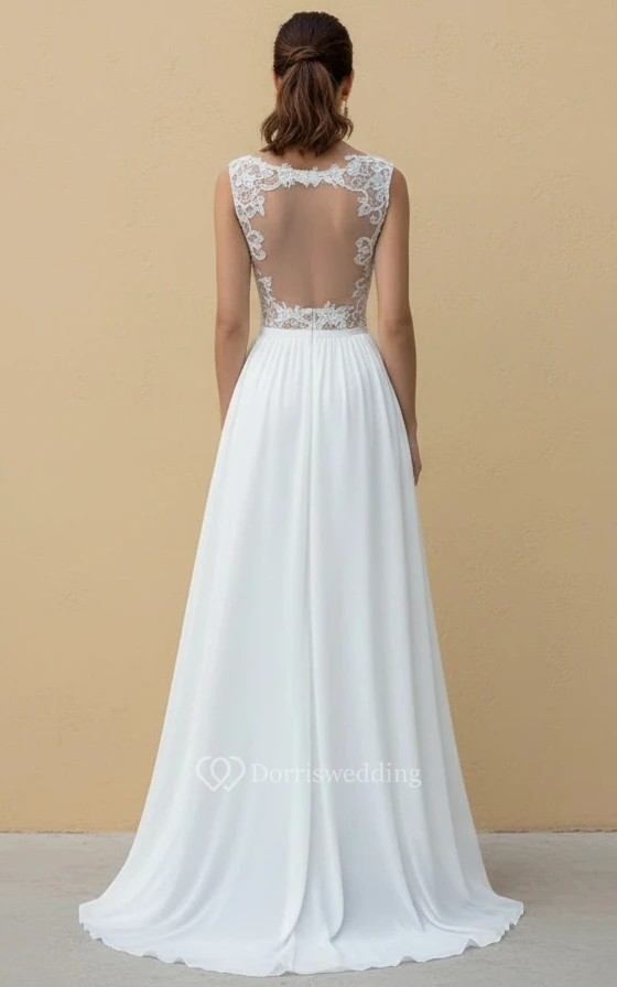 Sleeveless Lace Floral Sheer Tulle Waist Satin Wedding Jumpsuit