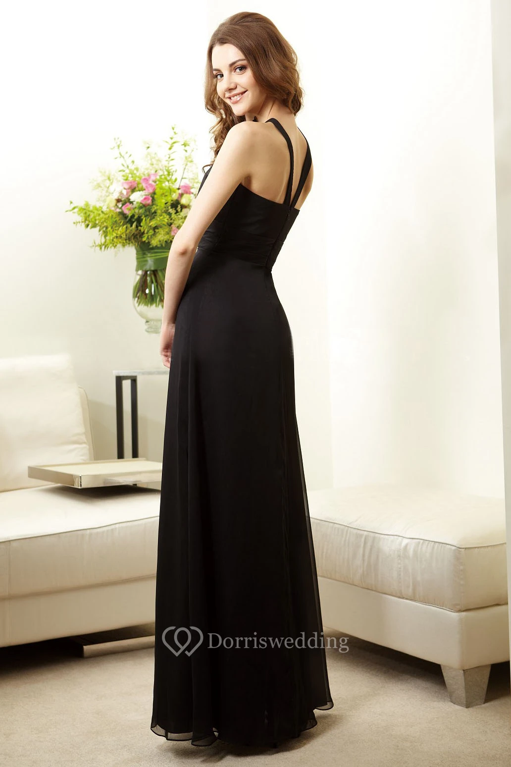 Sleeveless Long Bridesmaid Dress With Floral High Neckline