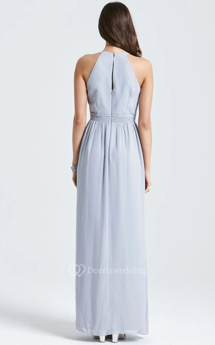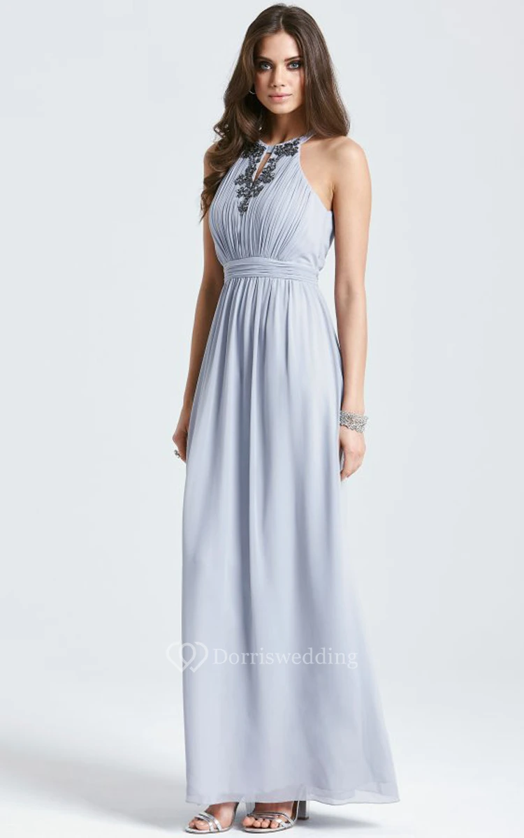 Sleeveless Long Chic Chifon Dress With Beadings