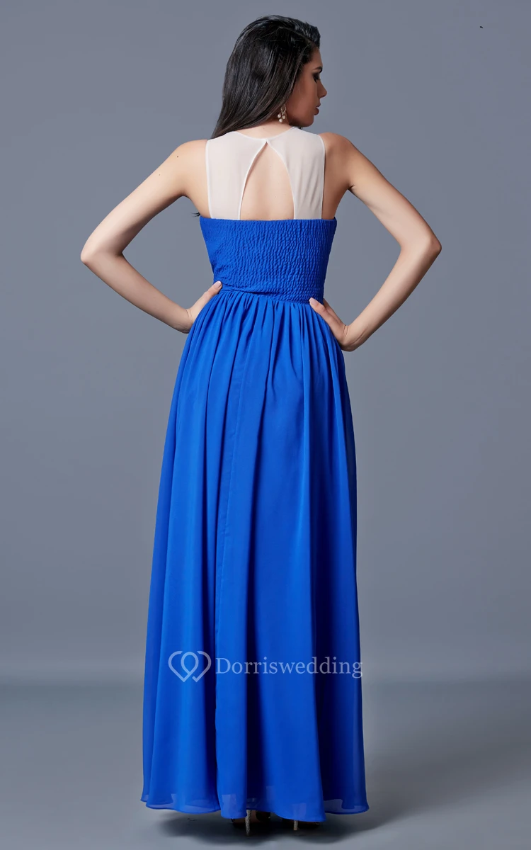 Sleeveless Long Chiffon A-line Dress With Side Split