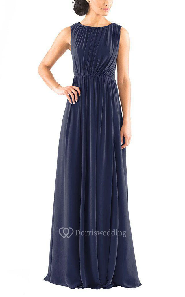 Sleeveless Long Chiffon Bridesmaid Dress with Ruching