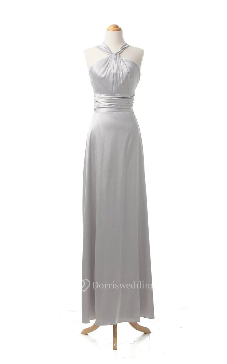 Sleeveless Long Gown With Ruched Waist
