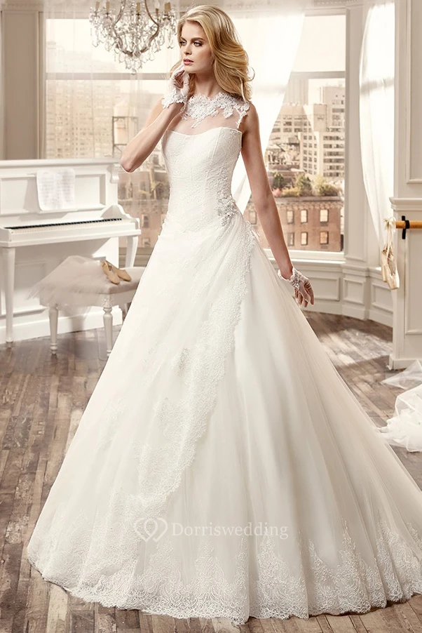 Sleeveless Long Wedding Dress With Appliques And Court Train