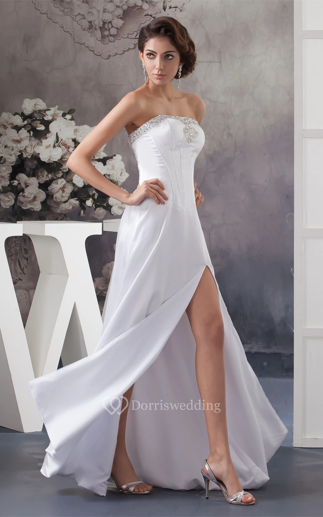 Sleeveless Maxi Front-Split Dress With Jeweled Top