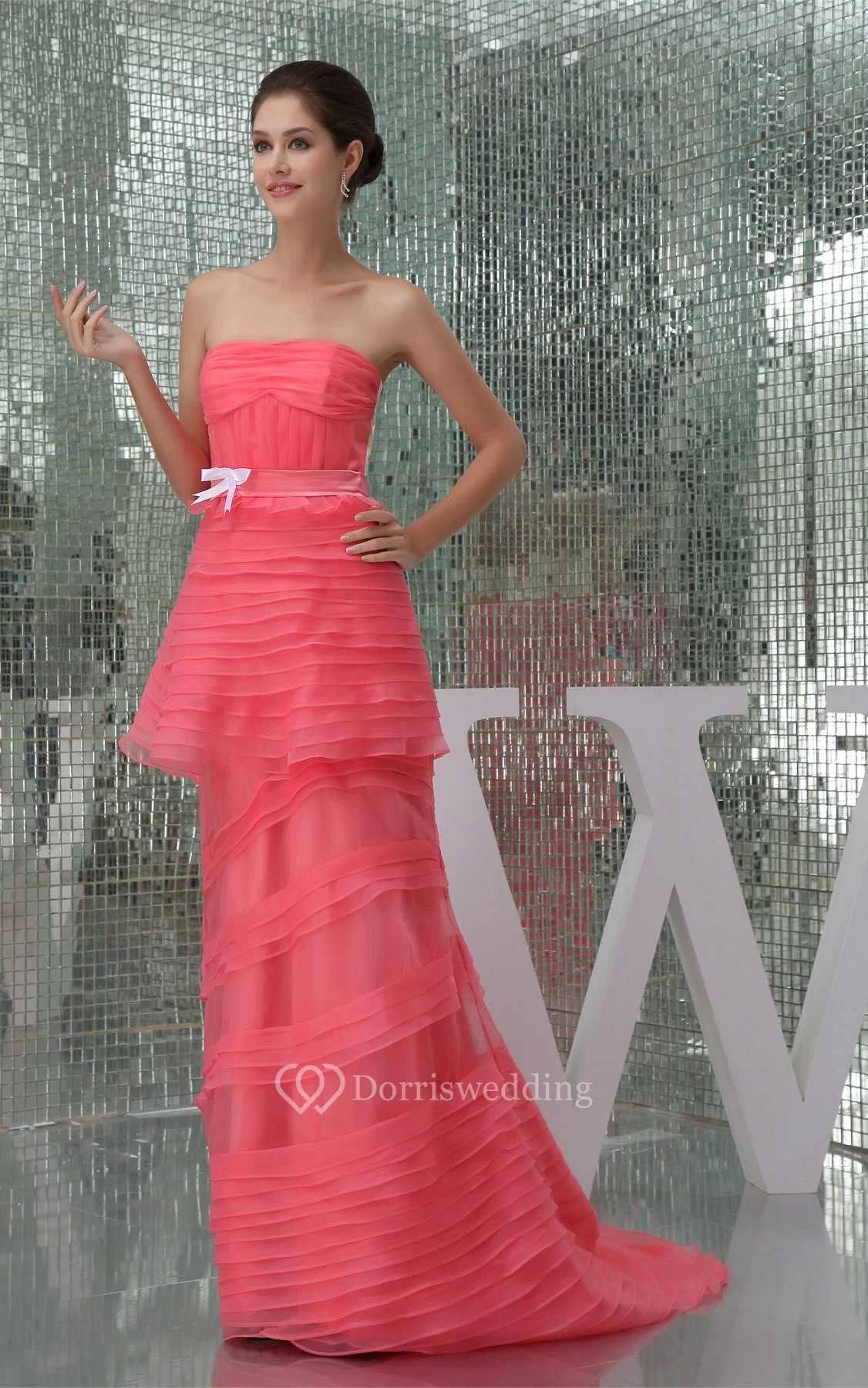 Sleeveless Maxi Sheath Sweep Train and Dress With Ruching