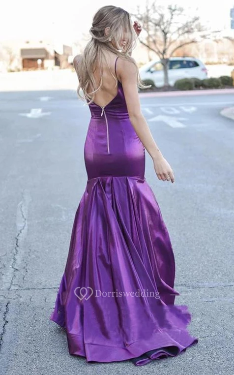 Sleeveless Mermaid Satin Prom Dress with Ruching and Train