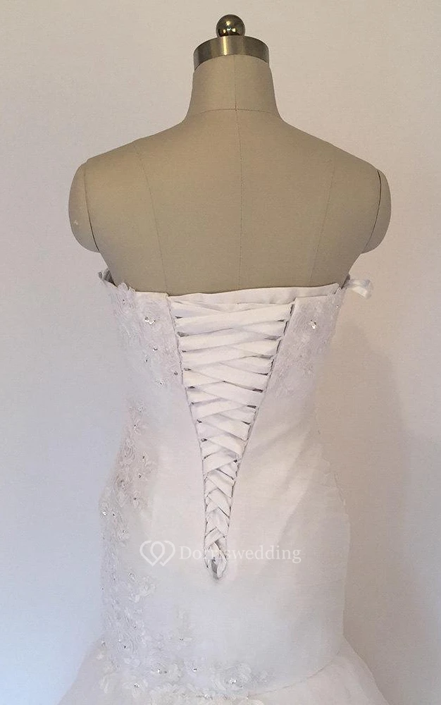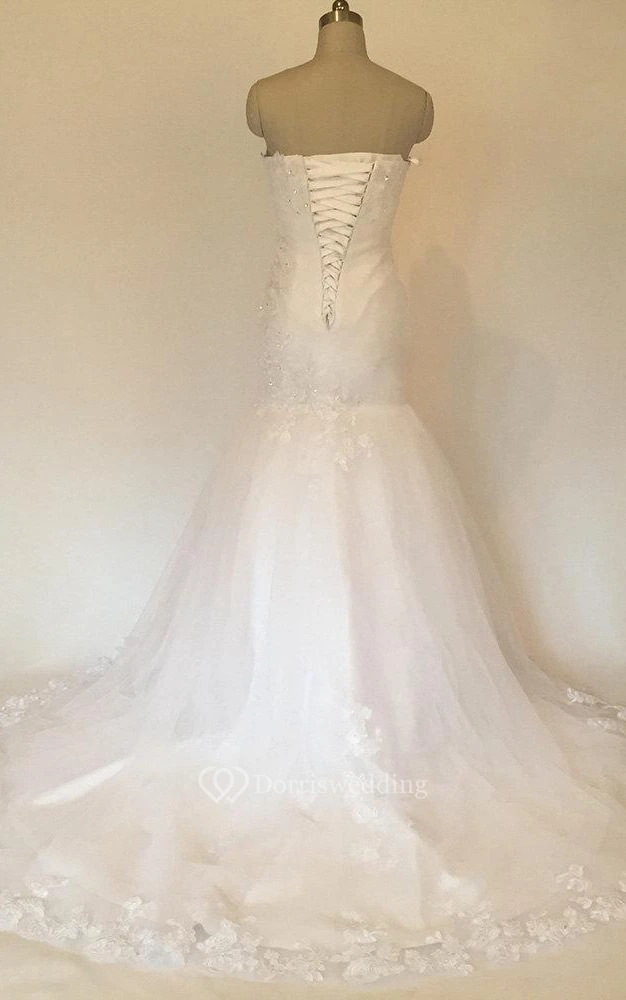 Sleeveless Mermaid Tulle Gown With Lace-Up Back and Appliques