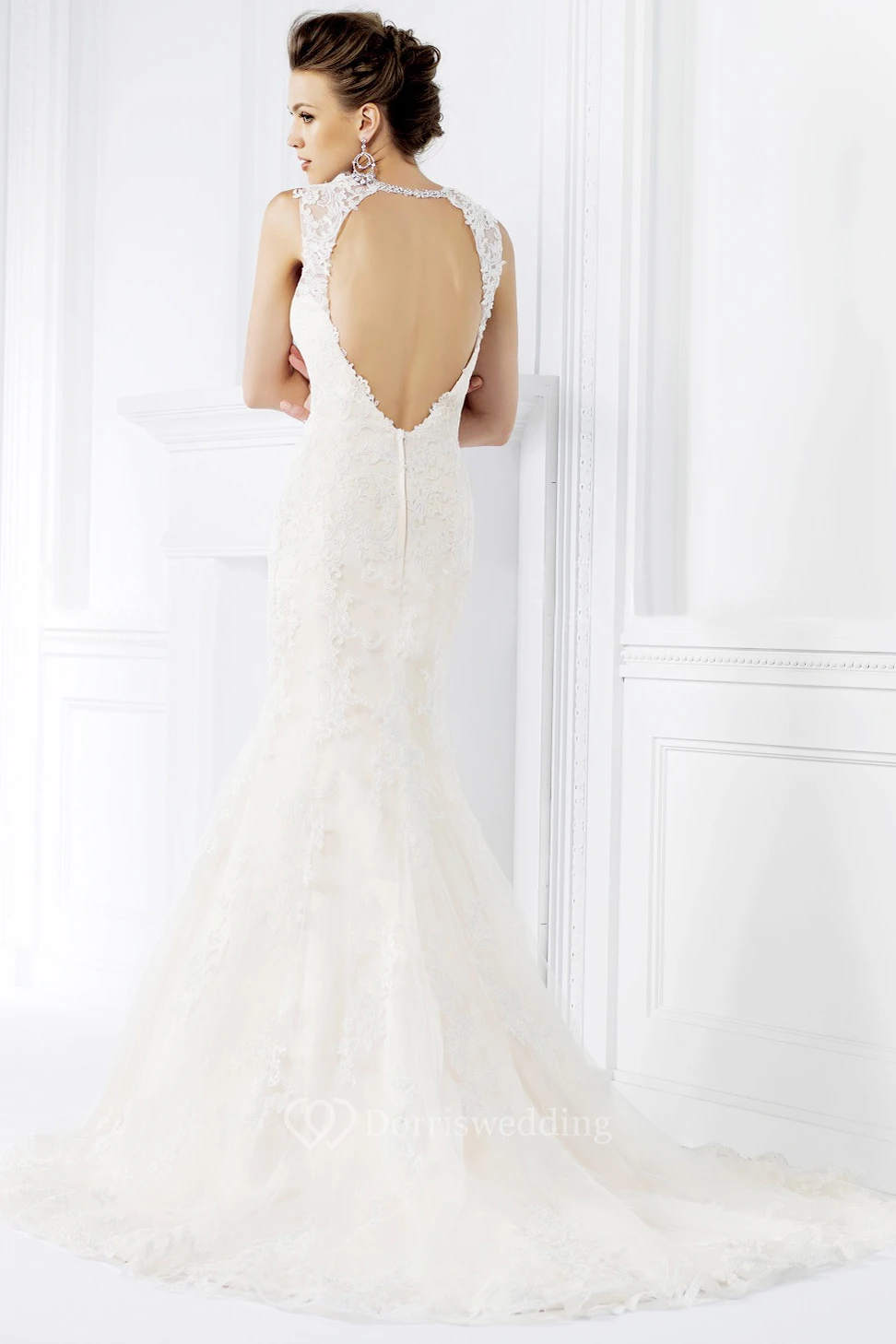 Sleeveless Mermaid Wedding Gown with Keyhole Back and Jewels