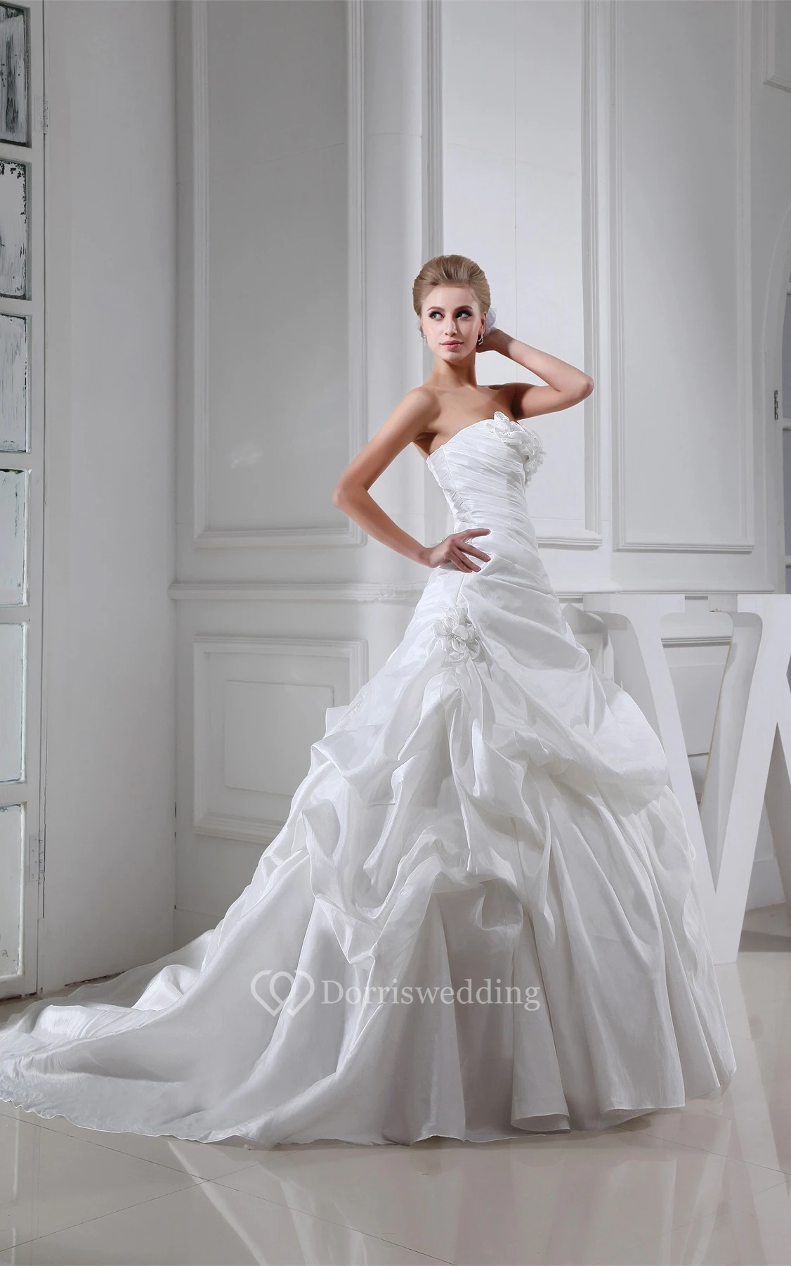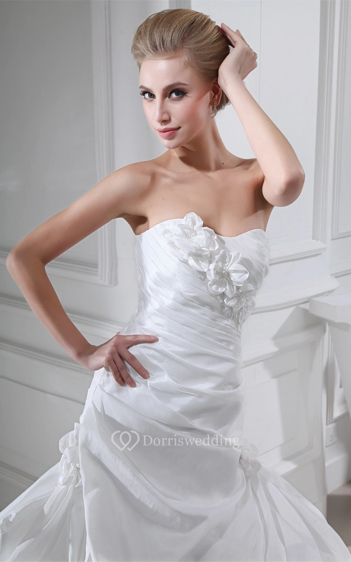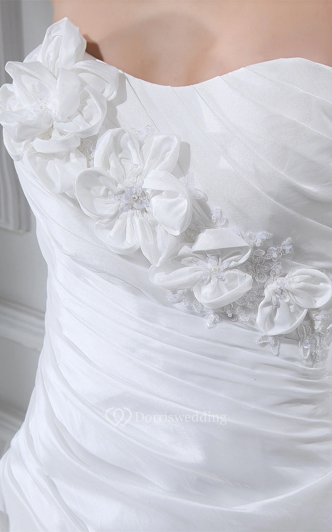 Sleeveless Pick-Up Floral Embellishment and Ball-Gown With Ruching