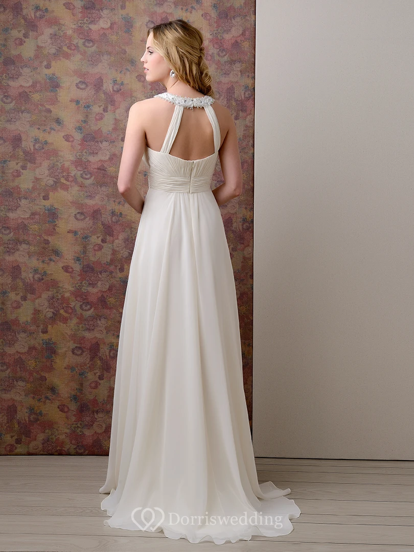 Sleeveless Pleated Long Chiffon Gown Featuring Jeweled Neck
