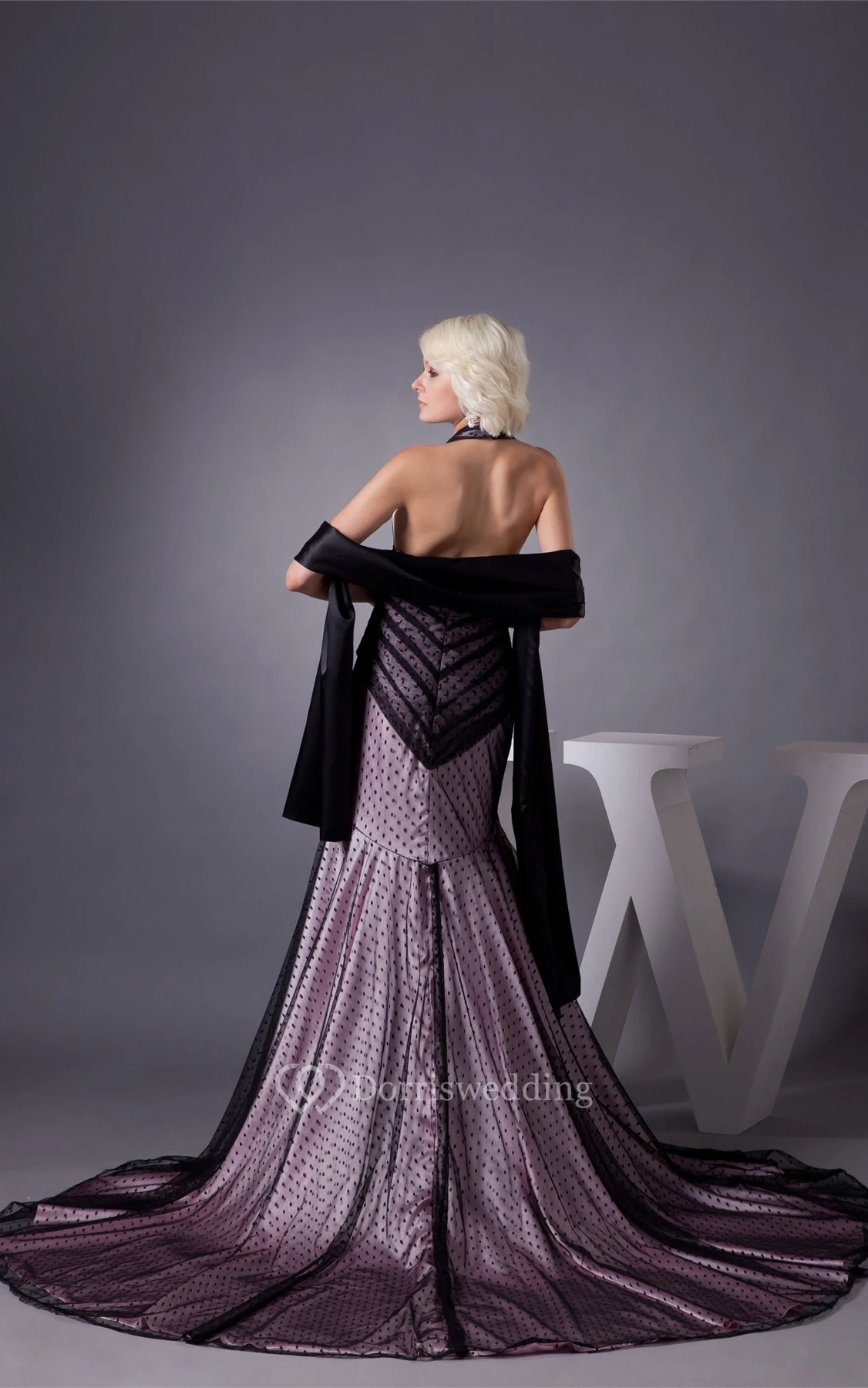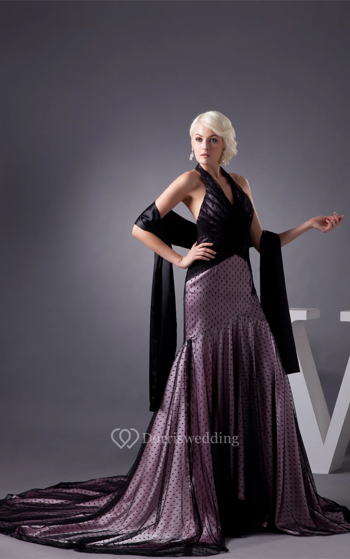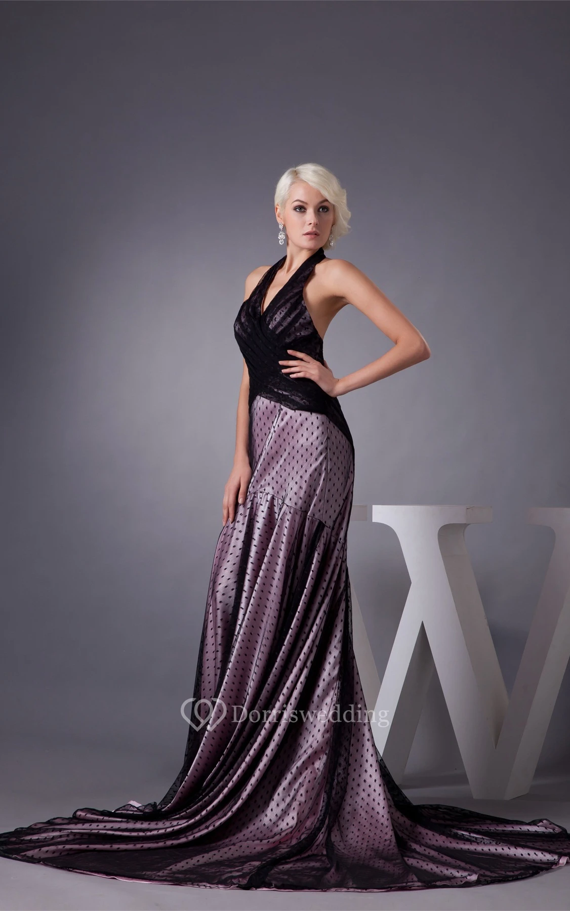Sleeveless Pleated Mermaid Dotted Design and Dress With Halter