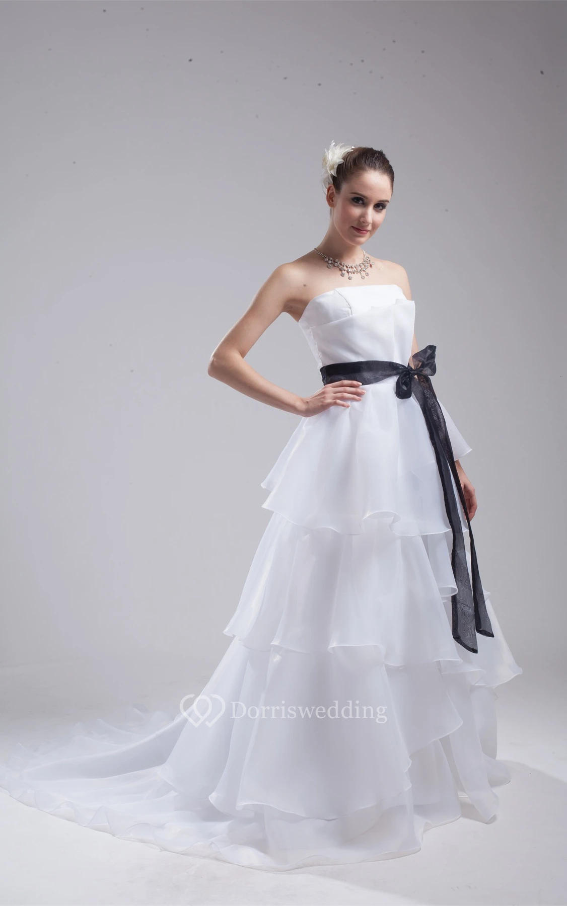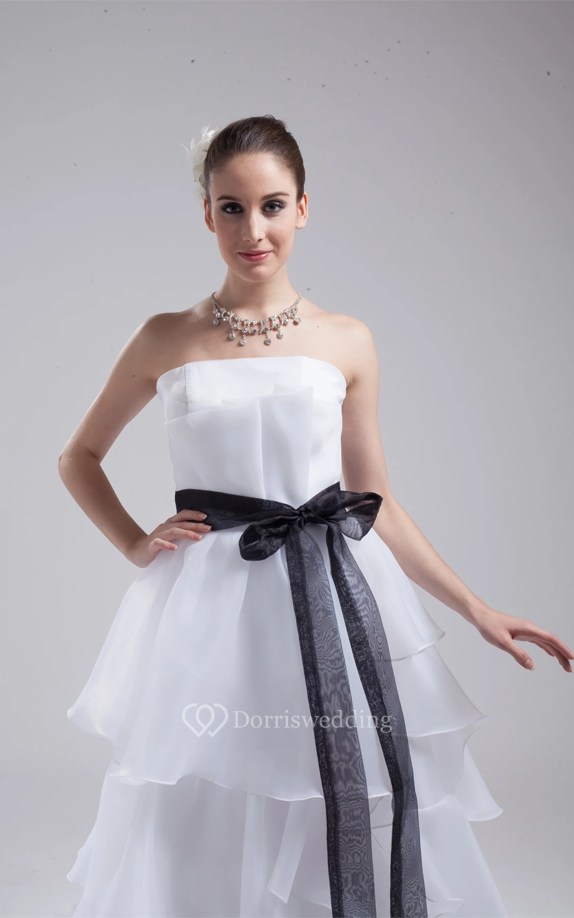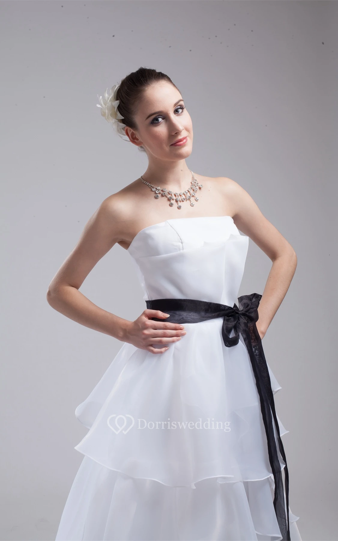 Sleeveless Ruched A-Line Ribbon and Dress With Ruffles