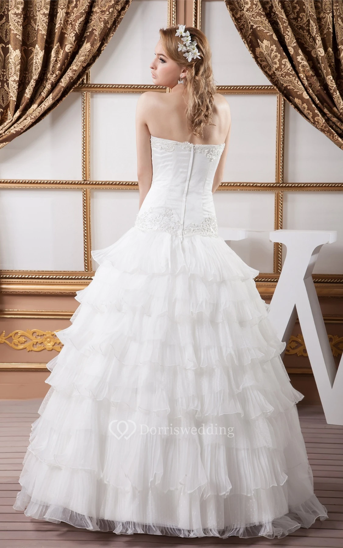 Sleeveless Ruched Appliques and Ball-Gown With Rhinestone