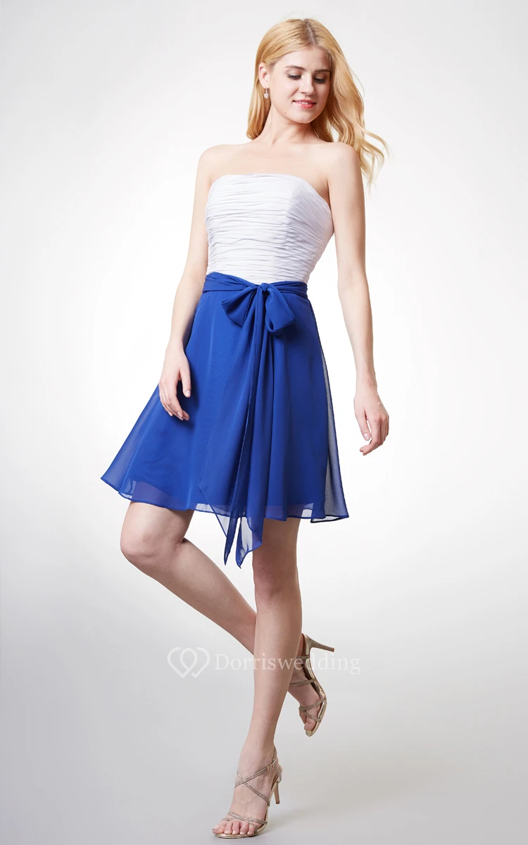 Sleeveless Ruched Bodice A-line Chiffon Dress With Sash