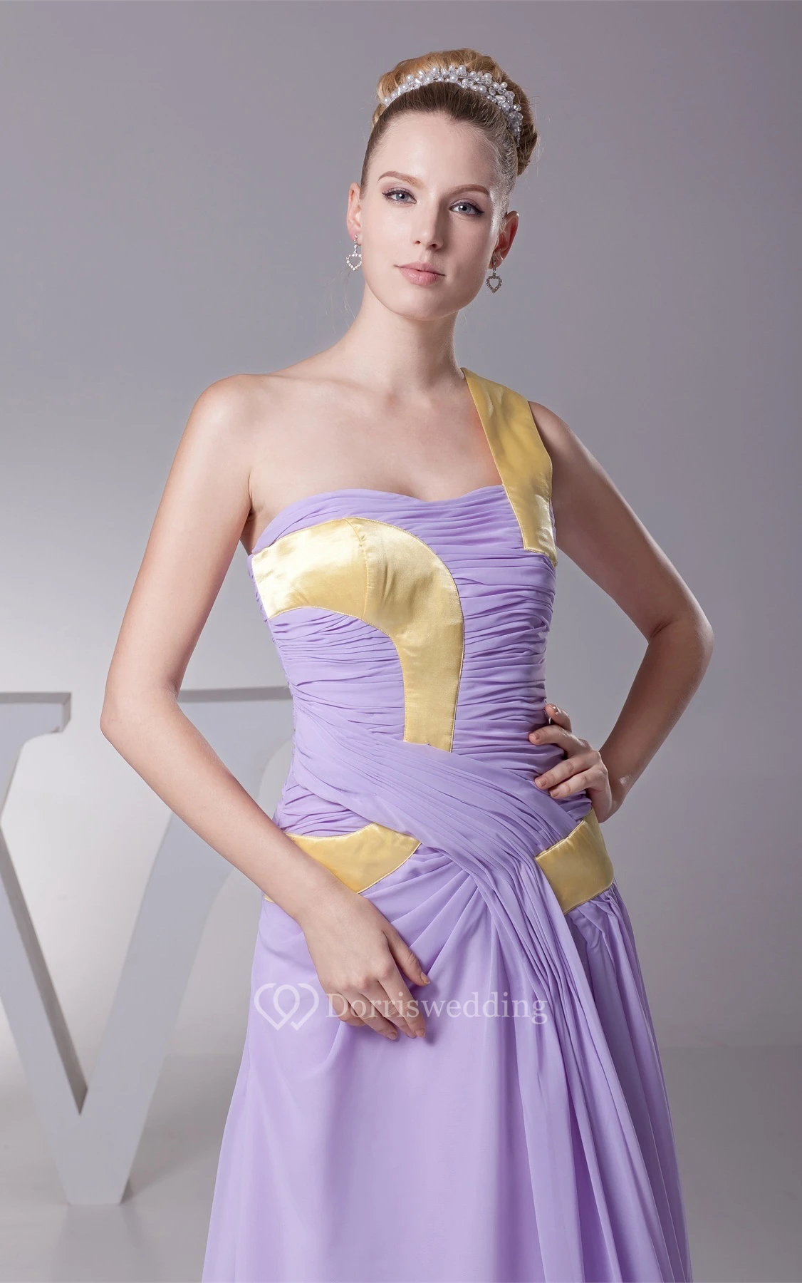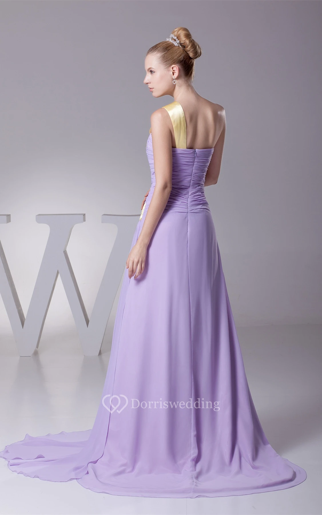 Sleeveless Ruched Maxi Chiffon Dress With Single Strap