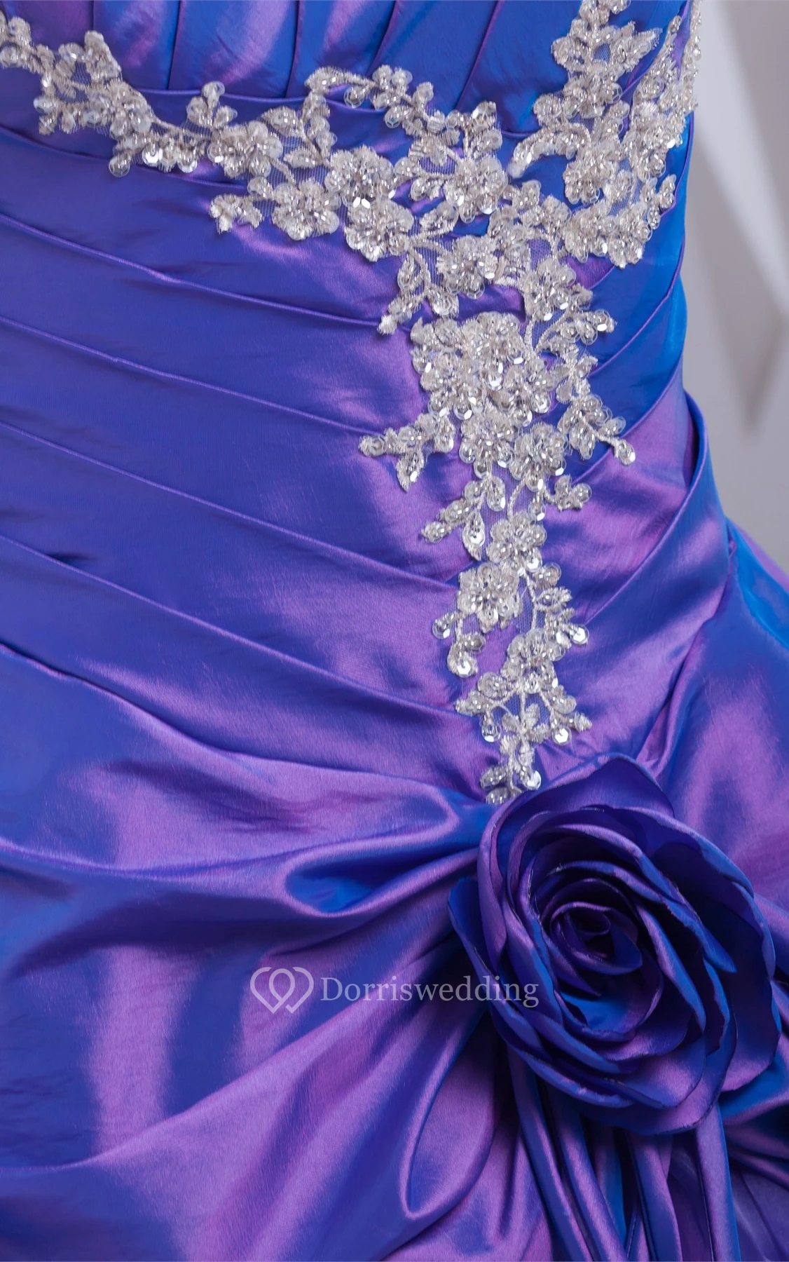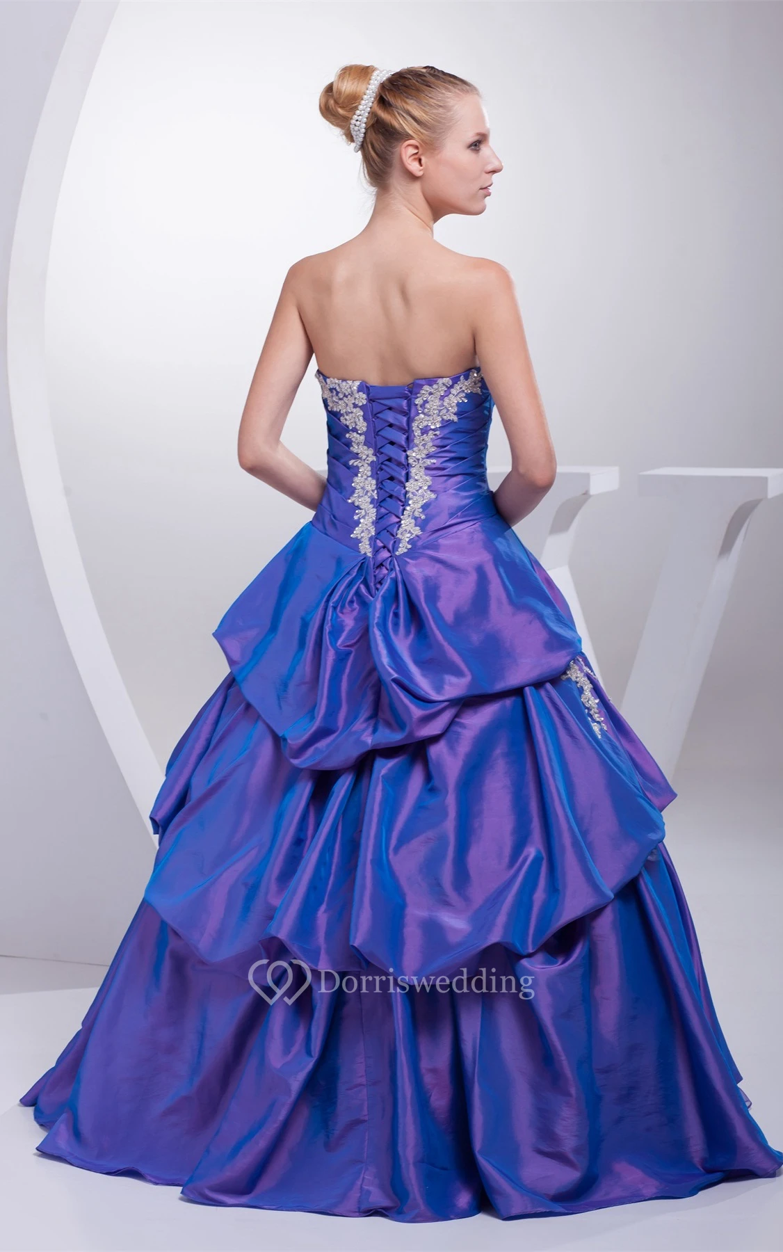 Sleeveless Ruched Pick-Up Ball-Gown With Appliques