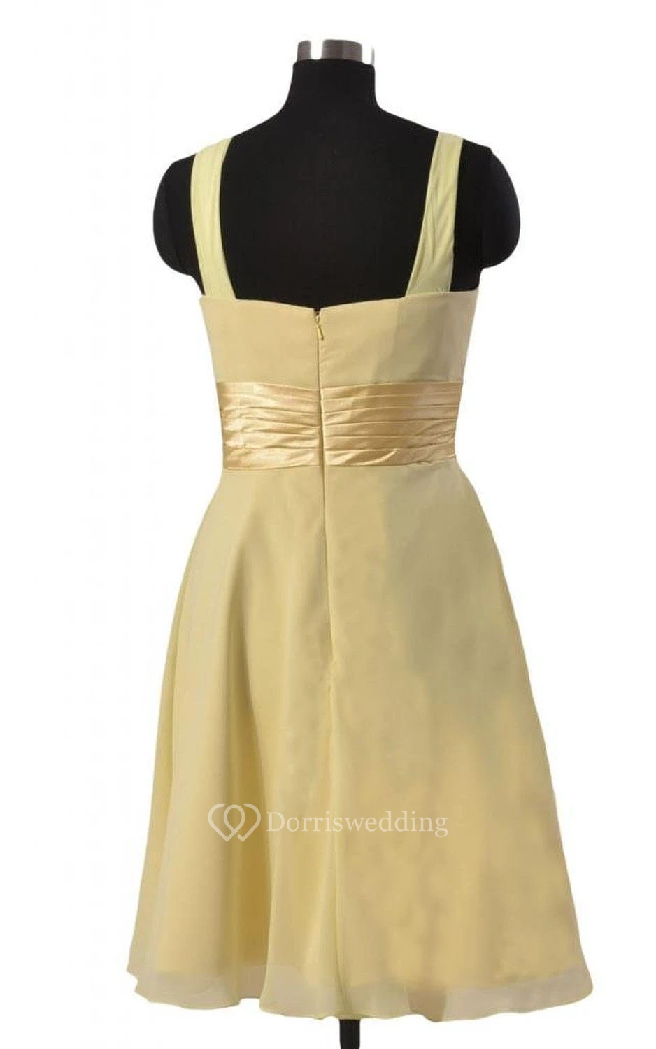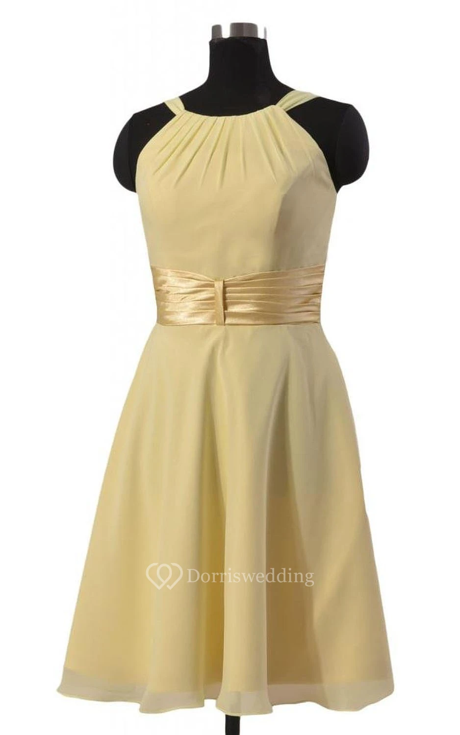 Sleeveless Ruched Sash Knee-length Layered Chiffon Dress