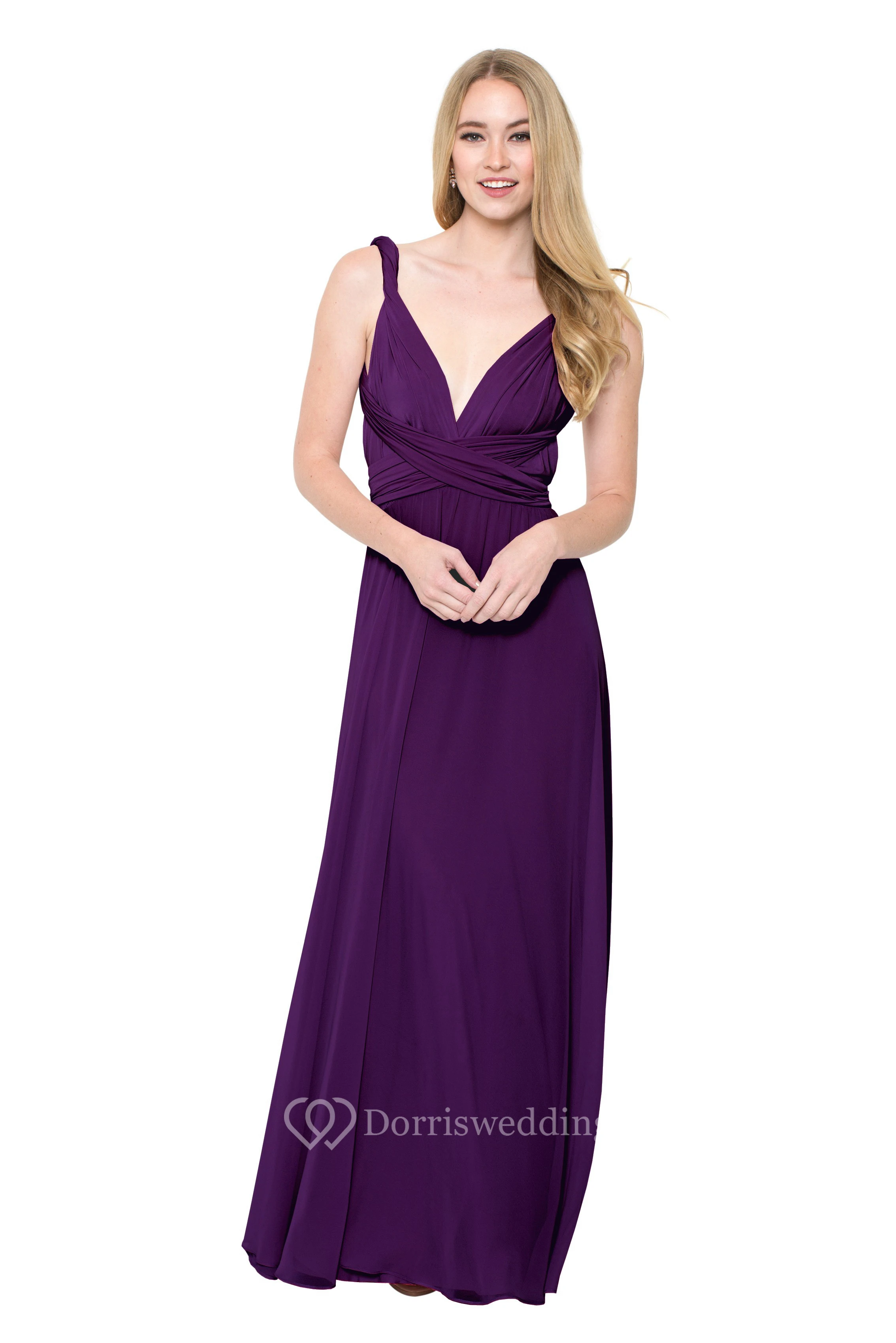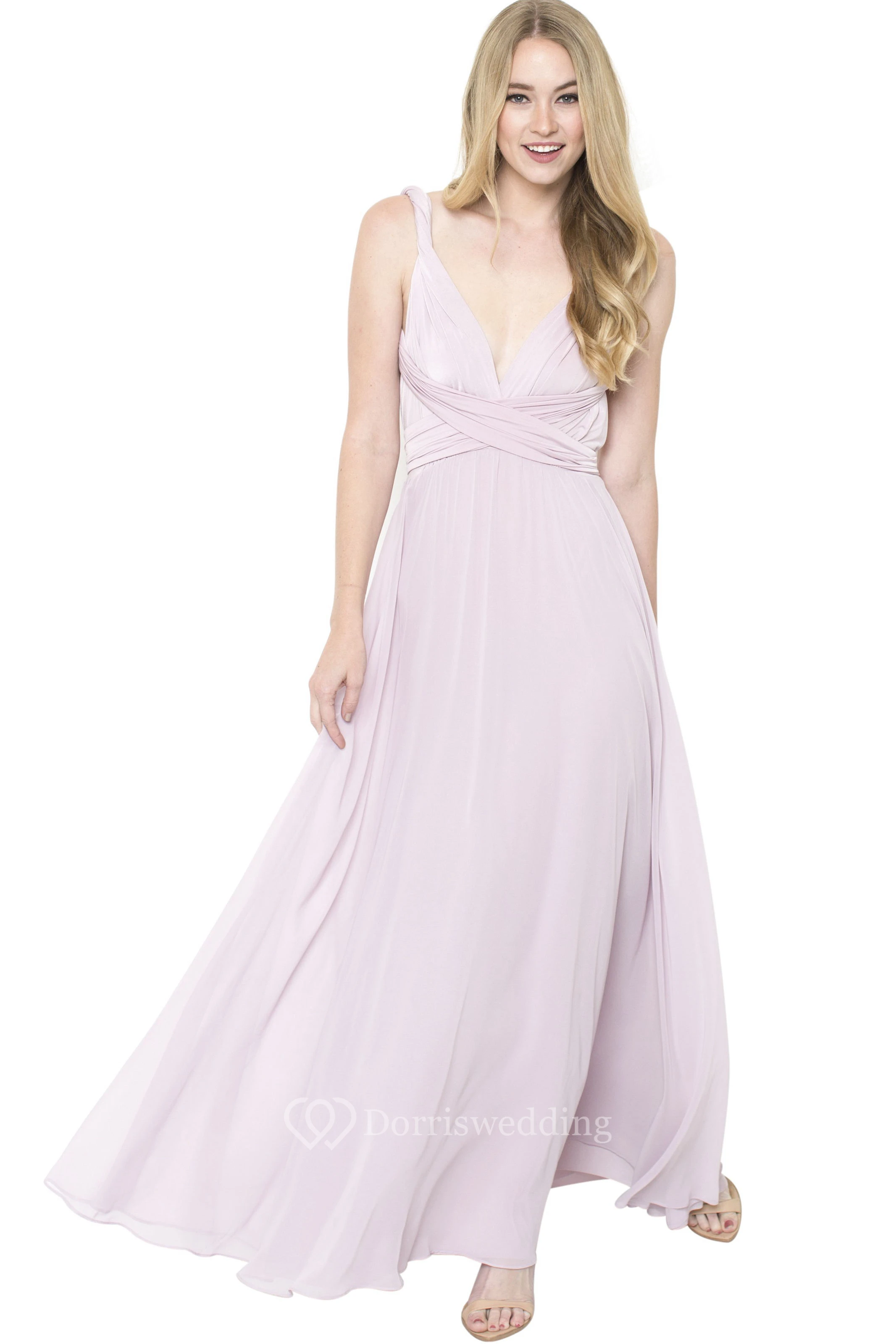 Sleeveless Ruched Strapped Chiffon Muti-Color Convertible Bridesmaid Dress