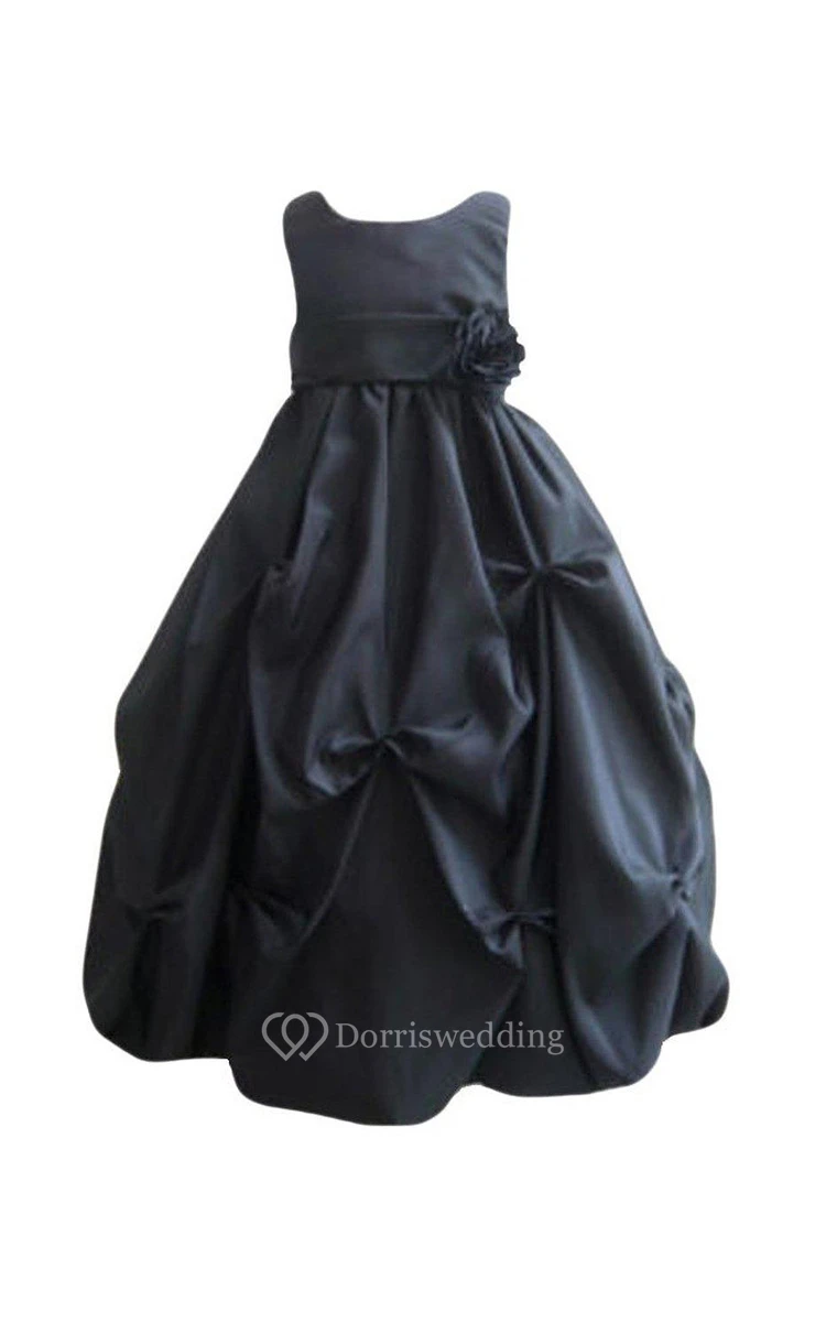 Sleeveless Ruffled Dress With Flower and Scoop Neck