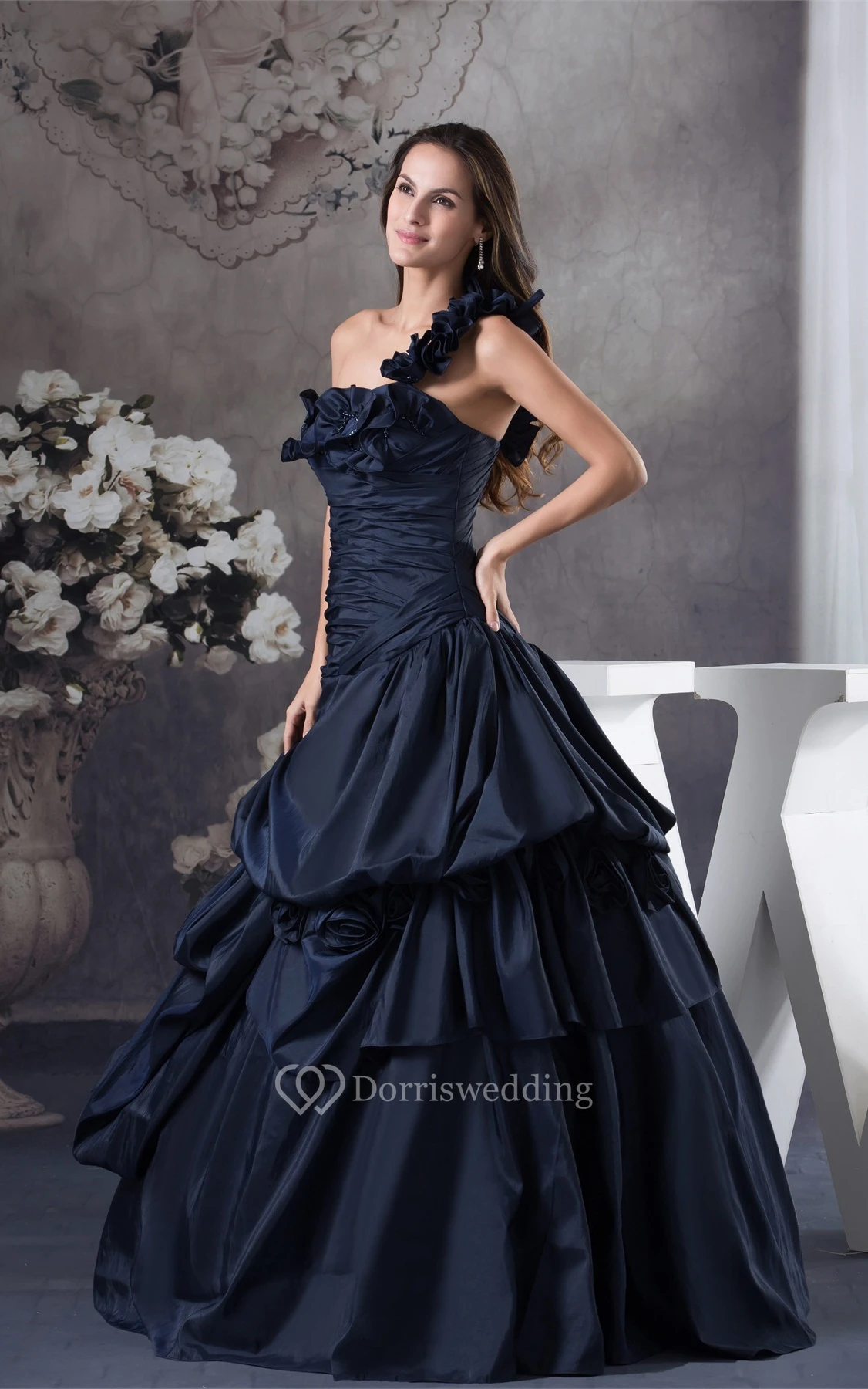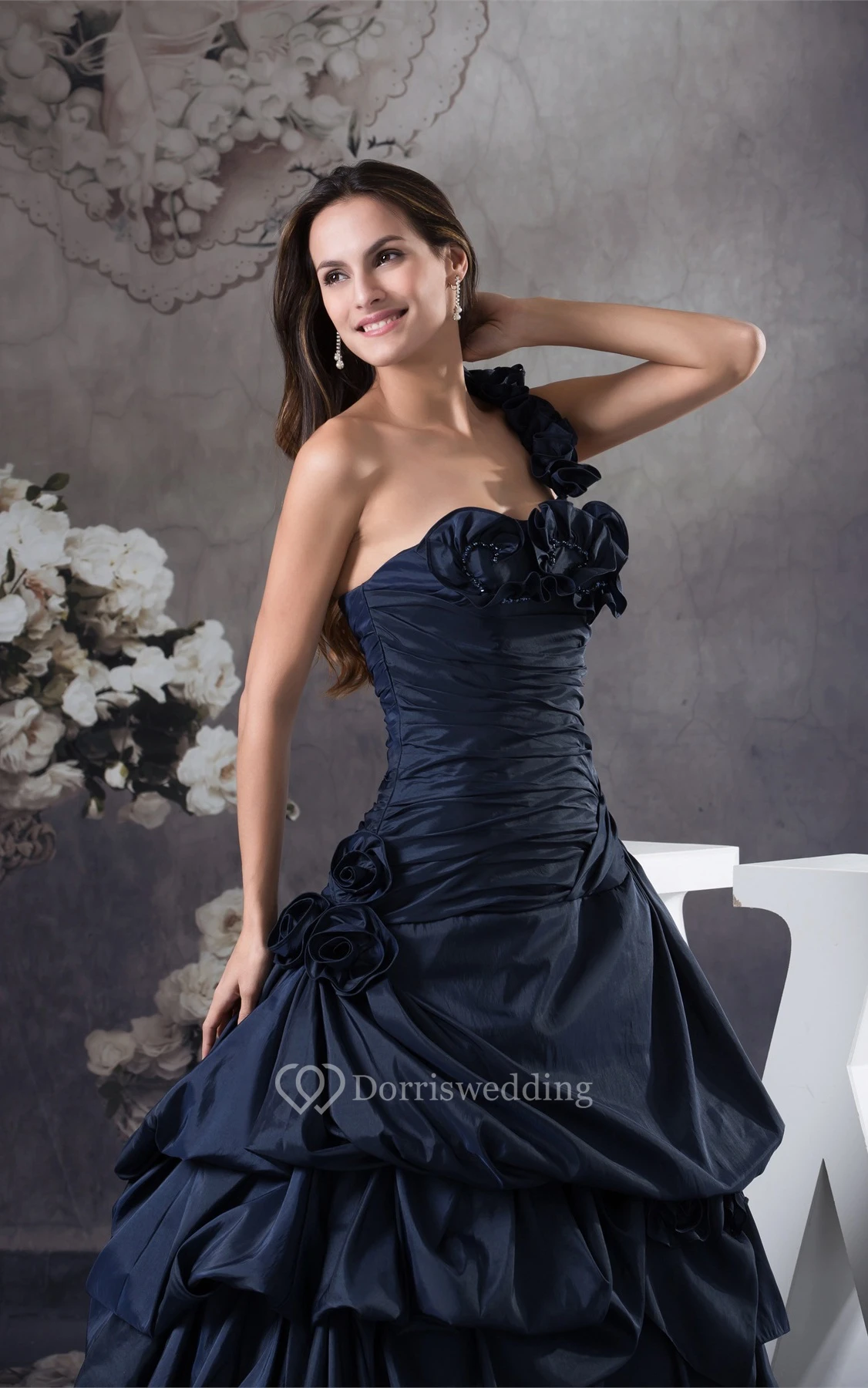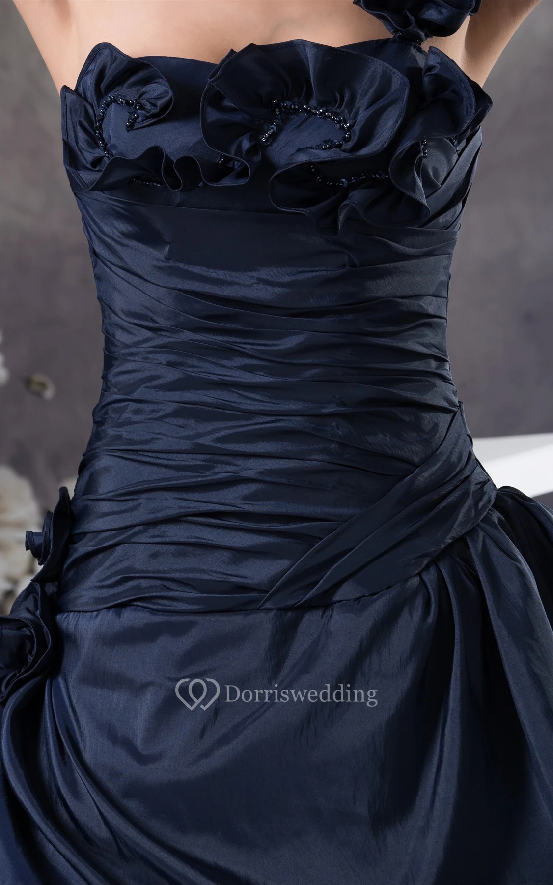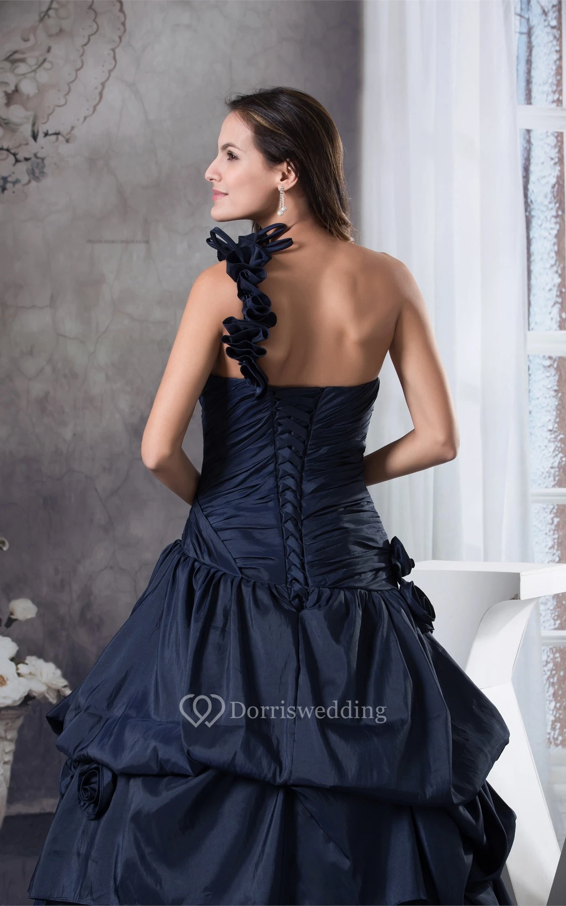 Sleeveless Ruffled Pick-Up Floral Strap and Ball-Gown With Ruching