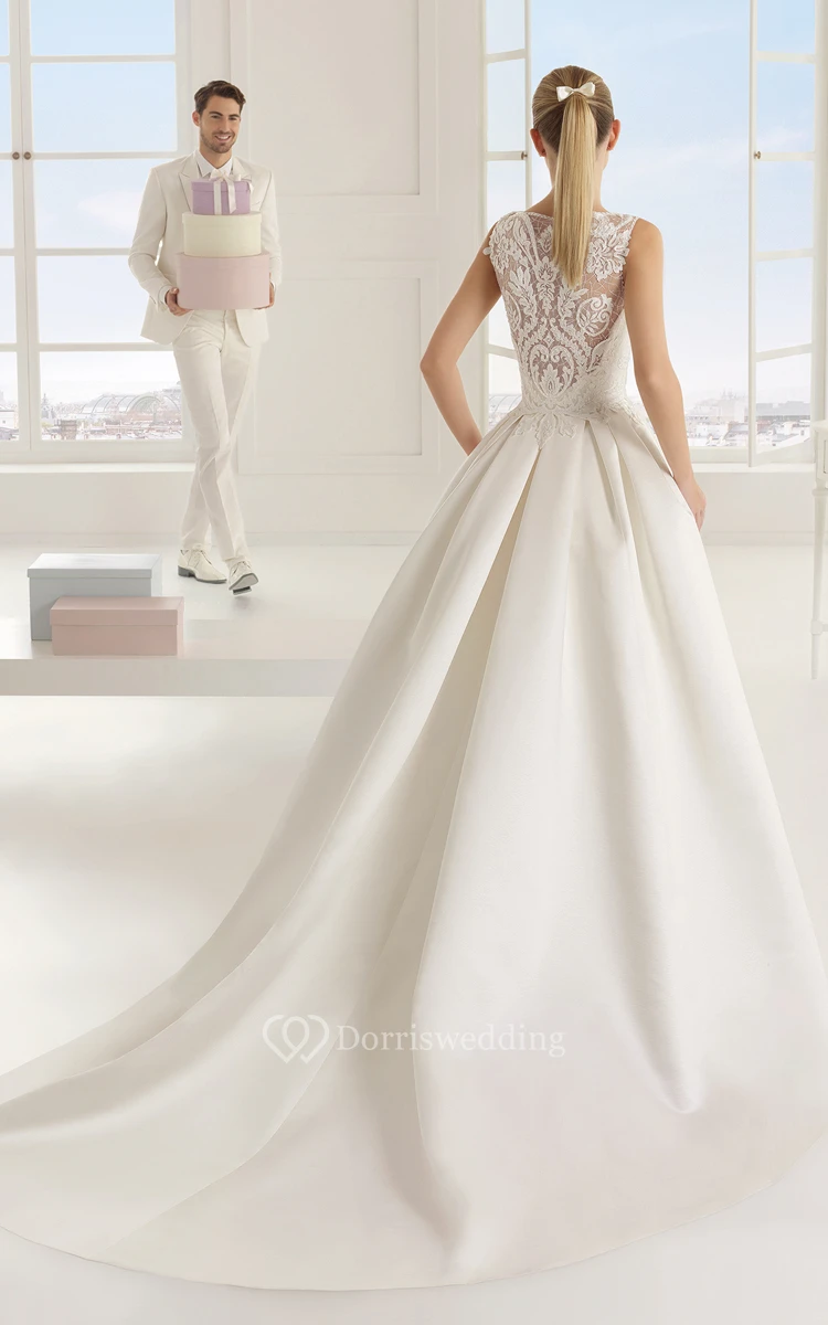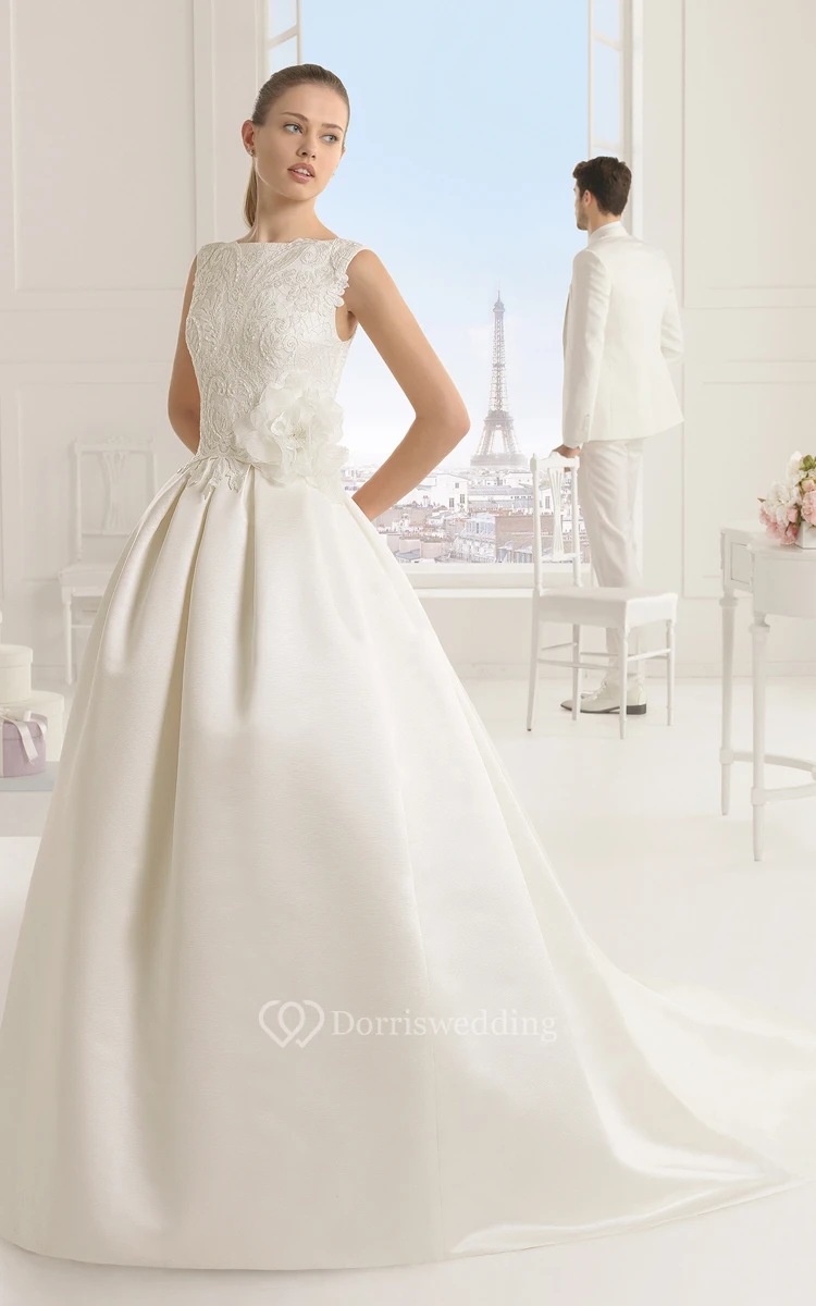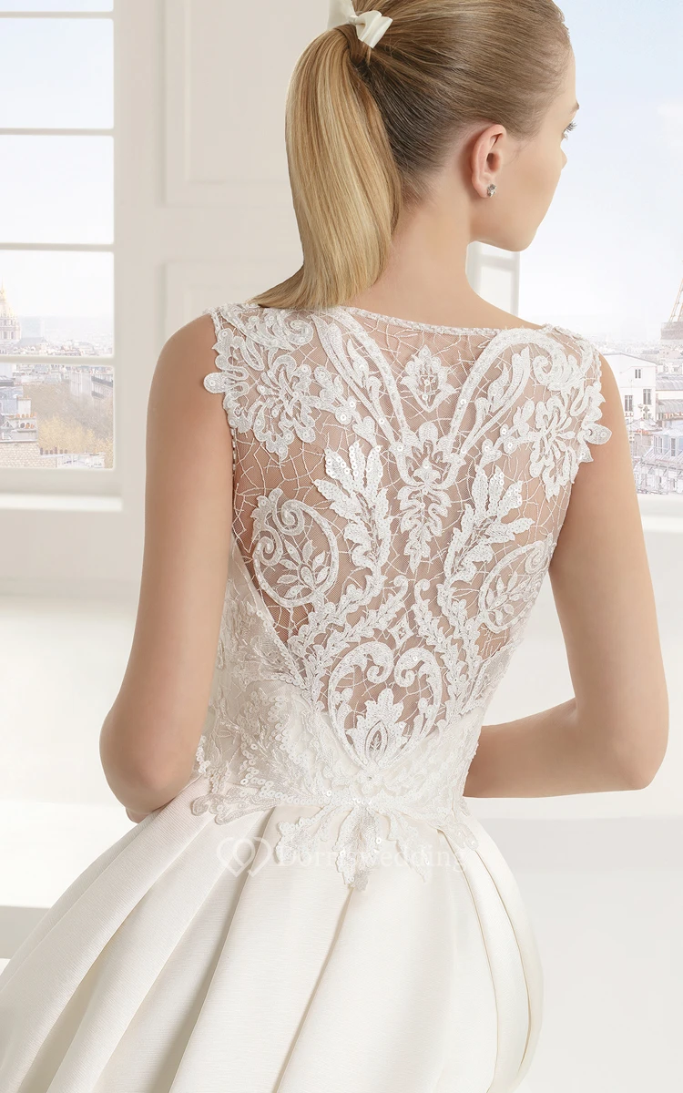 Sleeveless Satin Dress With Illusion Back And Appliques