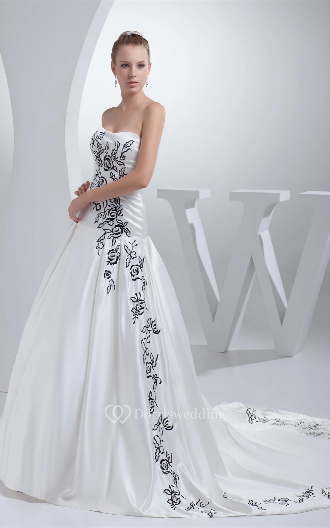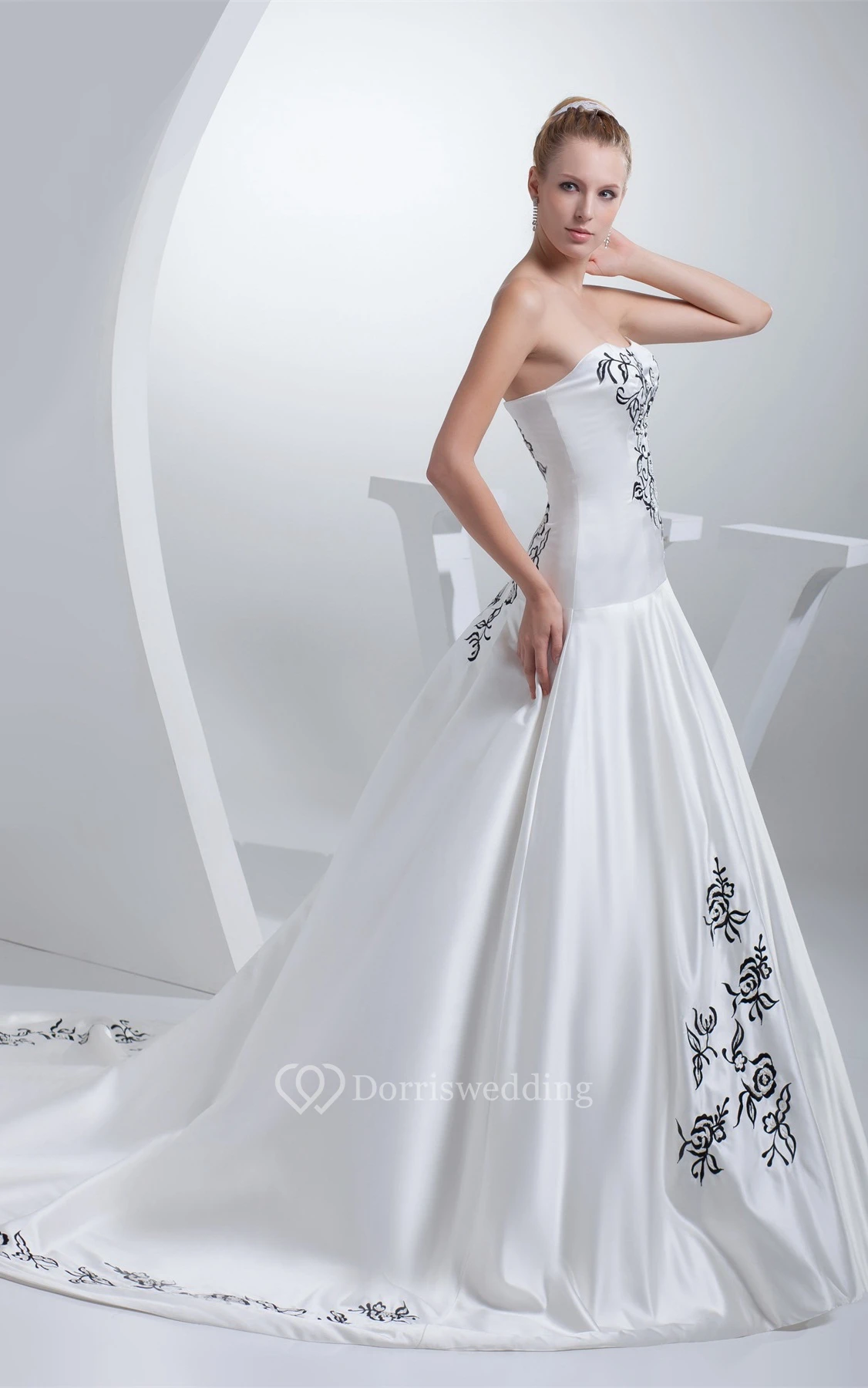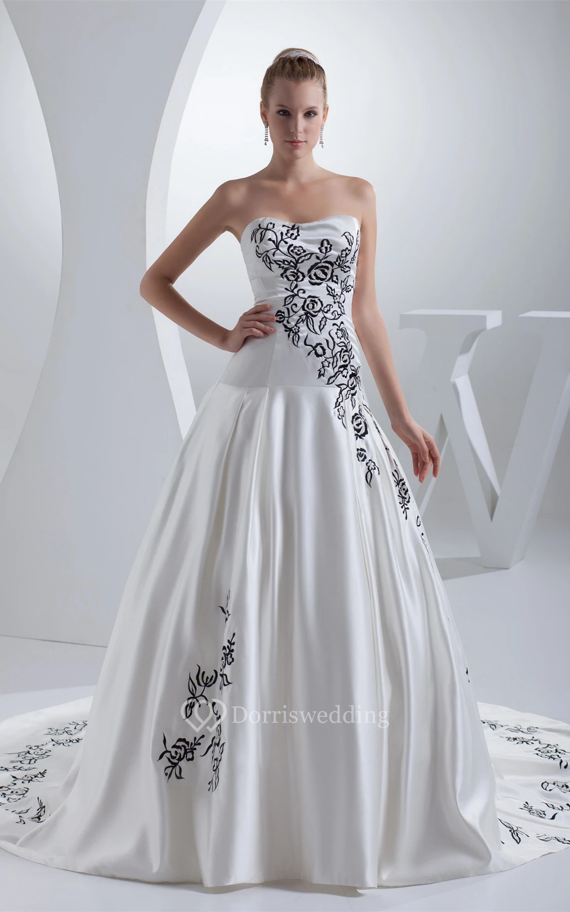 Sleeveless Satin Embroidered Court Train and Ball-Gown With Ruching