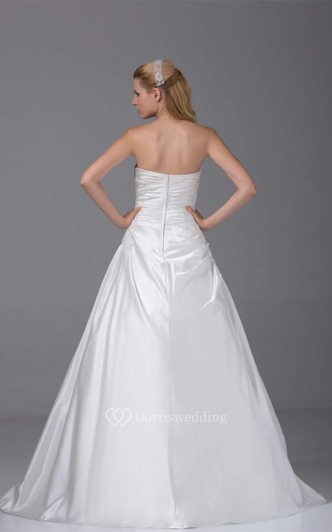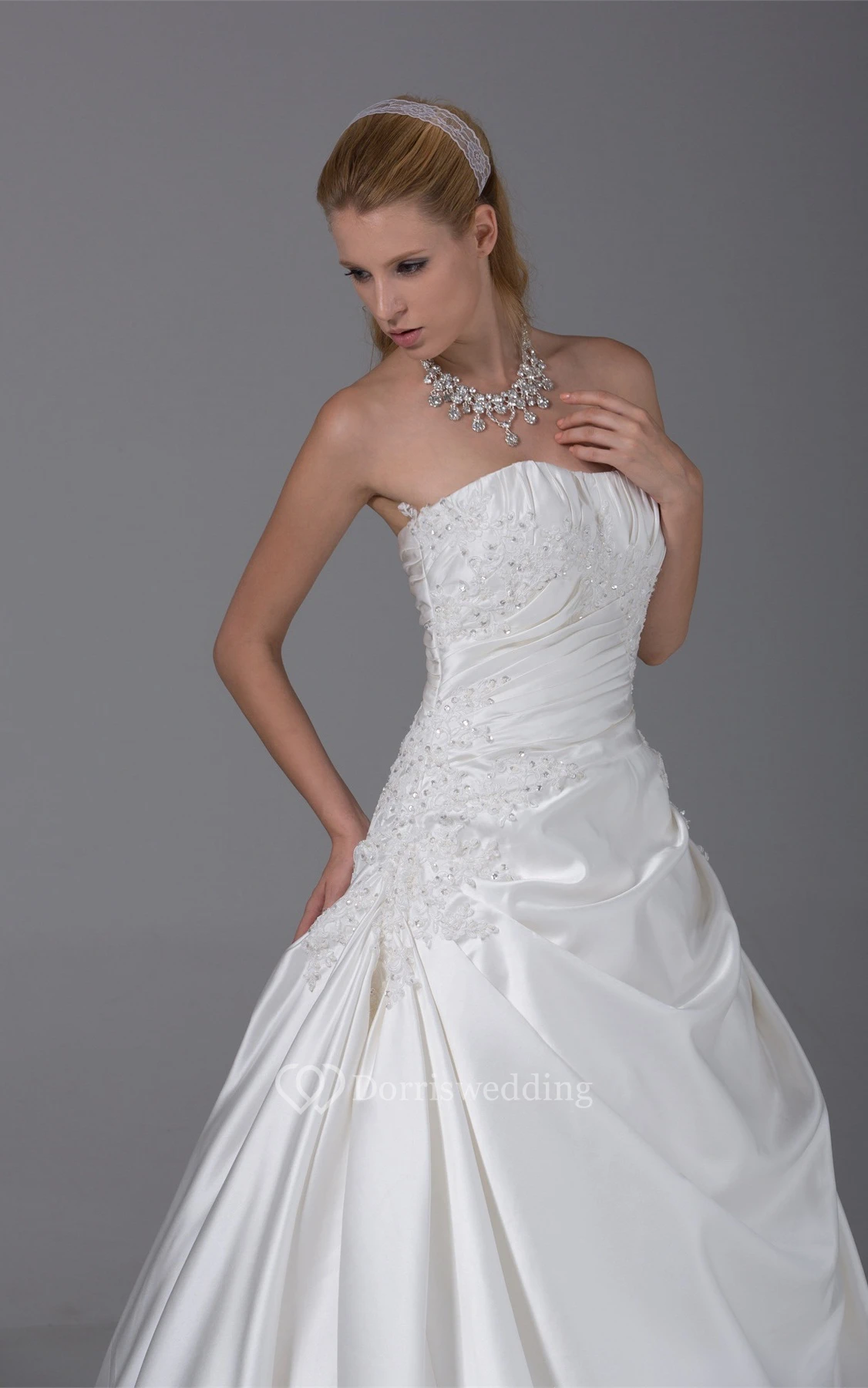 Sleeveless Satin Ruched Pick Up and Ball-Gown With Appliques