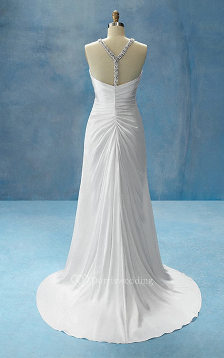 Sleeveless Scalloped Neckline Satin Dress With Ruching