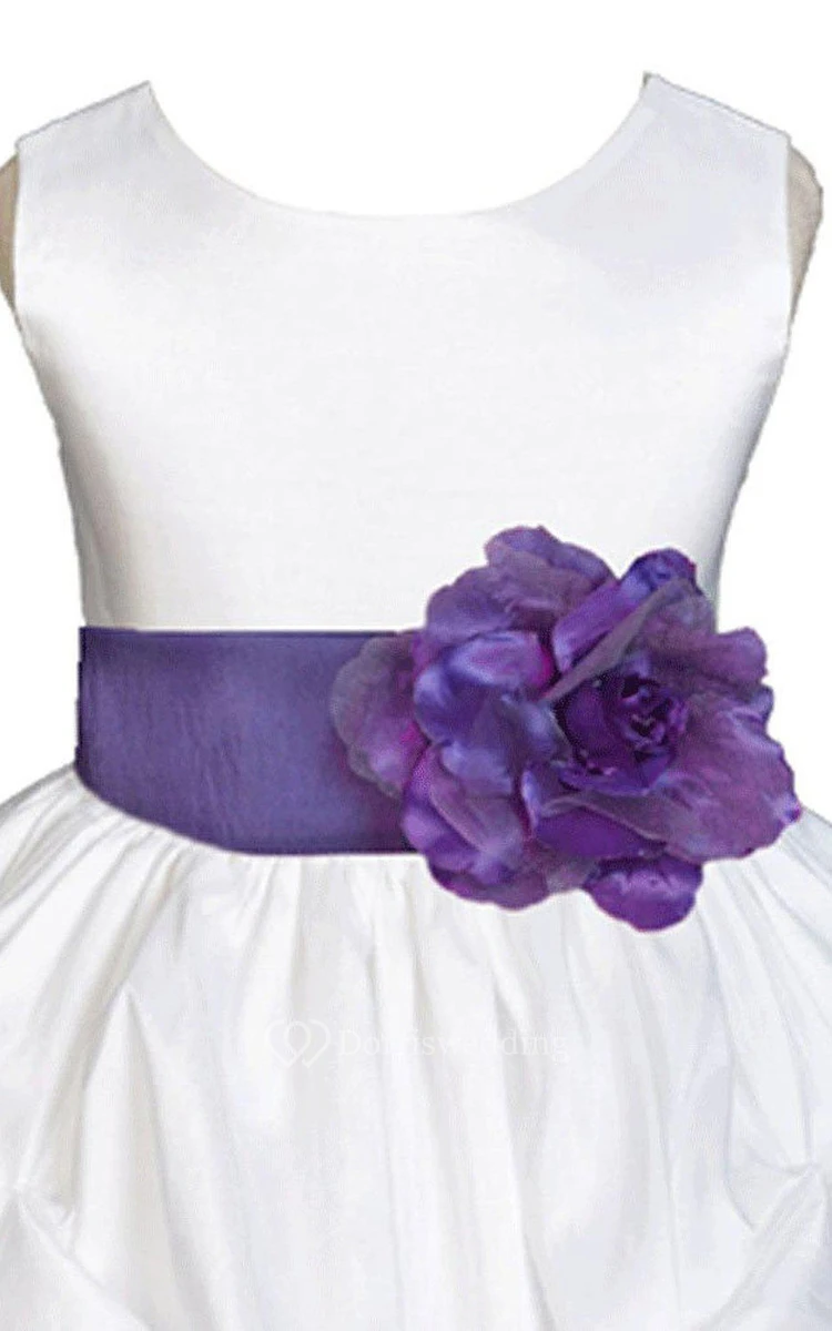 Sleeveless Scoop A-line Ruffled Dress With Flower