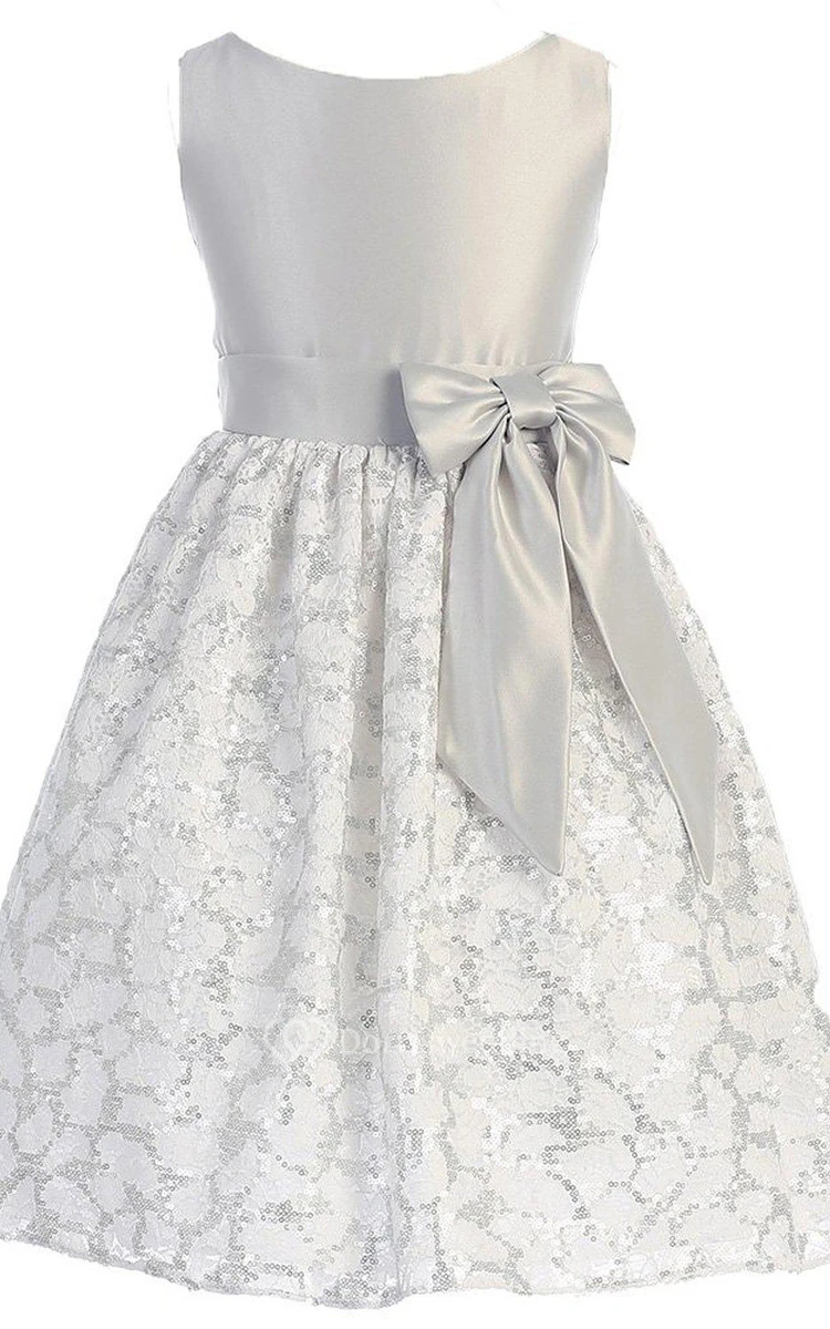 Sleeveless Scoop-neck A-line Dress With Lace Skirt