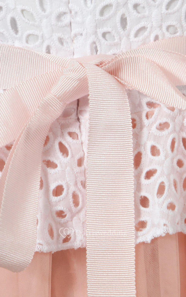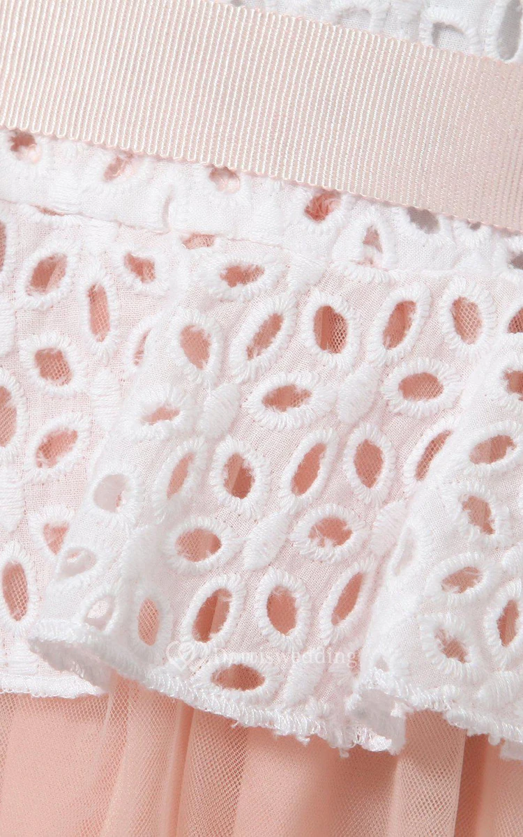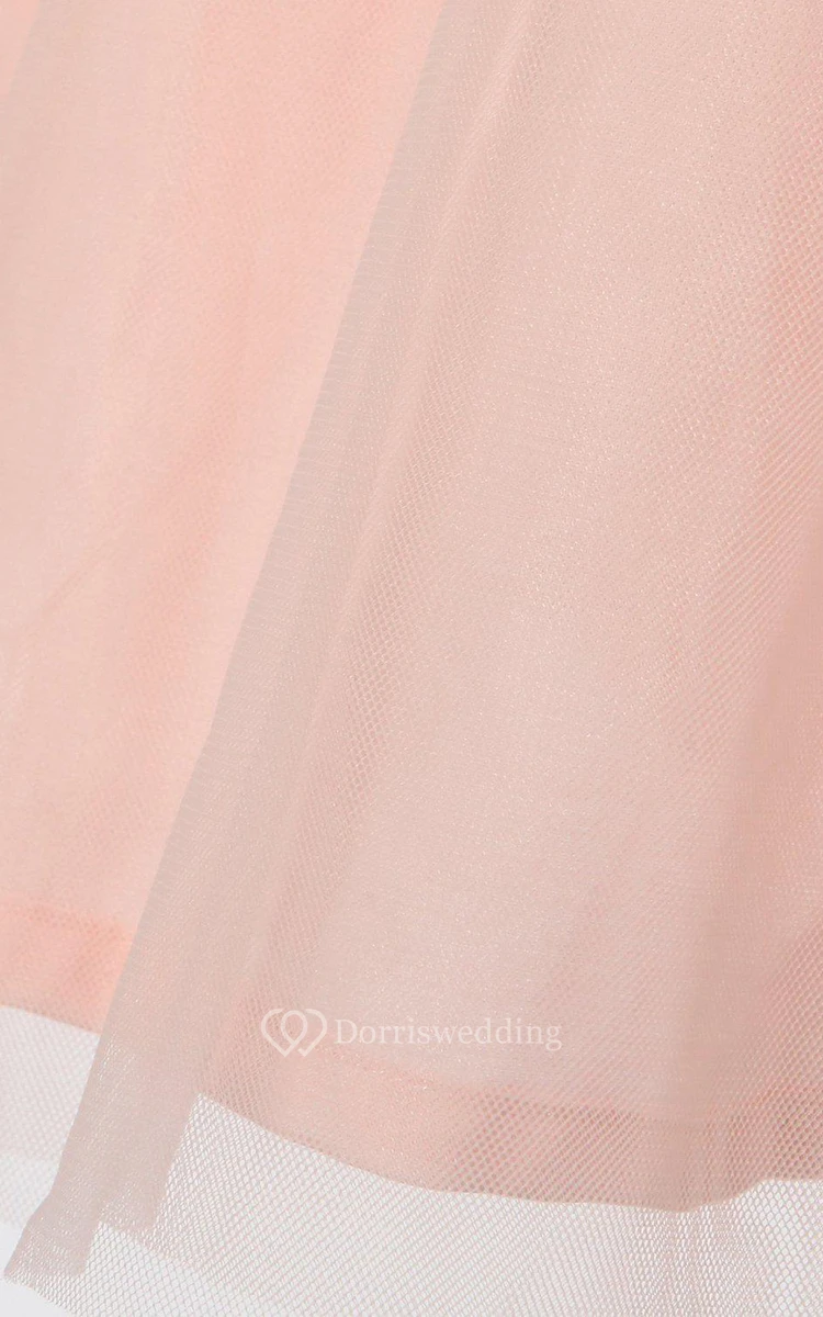 Sleeveless Scoop-neck A-line Tulle Dress With Belt