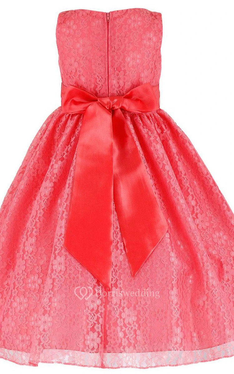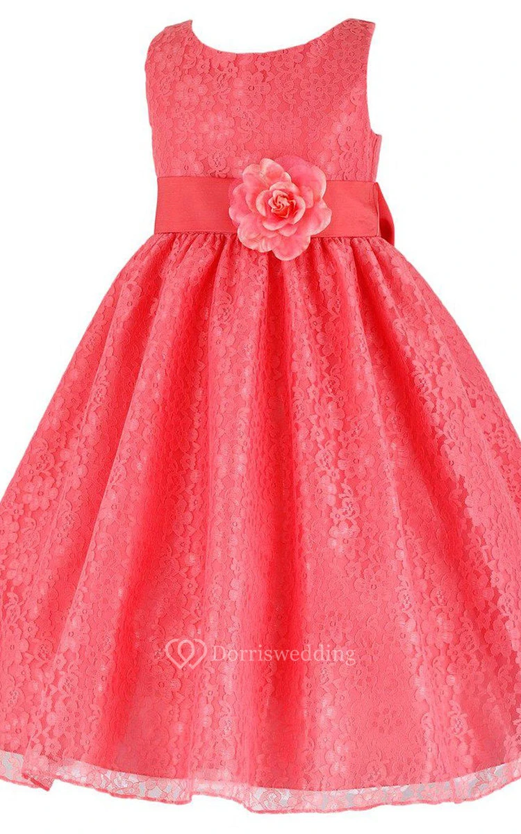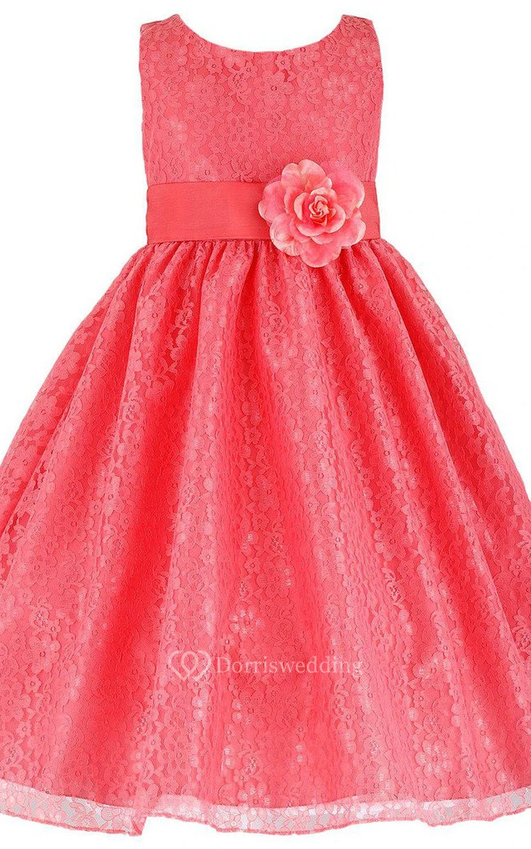 Sleeveless Scoop-neck Lace Dress With Flower