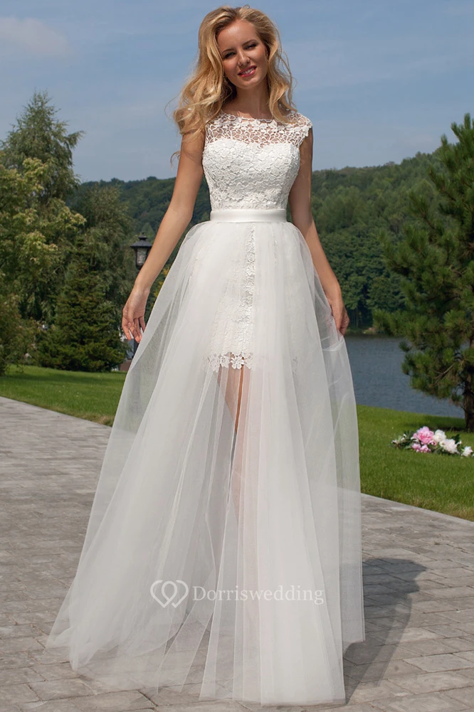 Sleeveless Scoop-Neck Maxi Tulle&Lace Wedding Dress With Keyhole