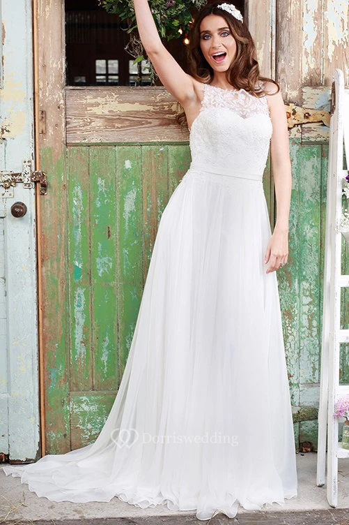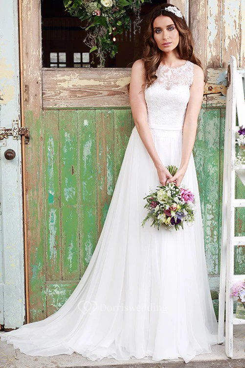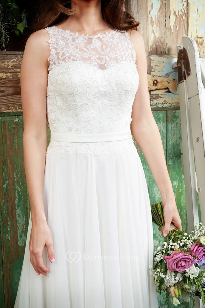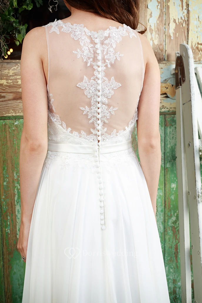Sleeveless Scoop-Neck Tulle Wedding Dress With Illusion