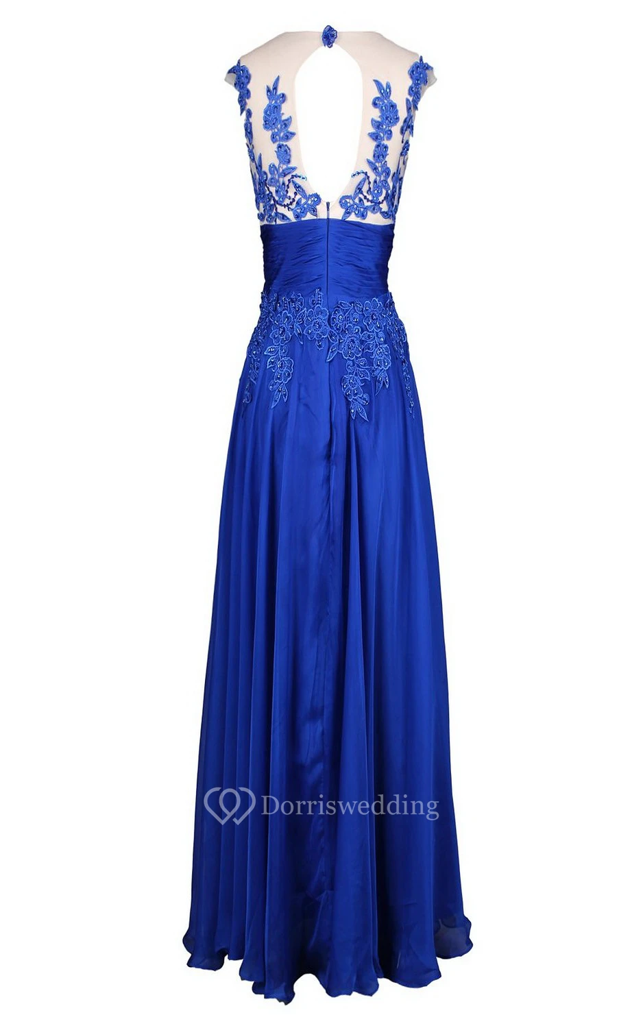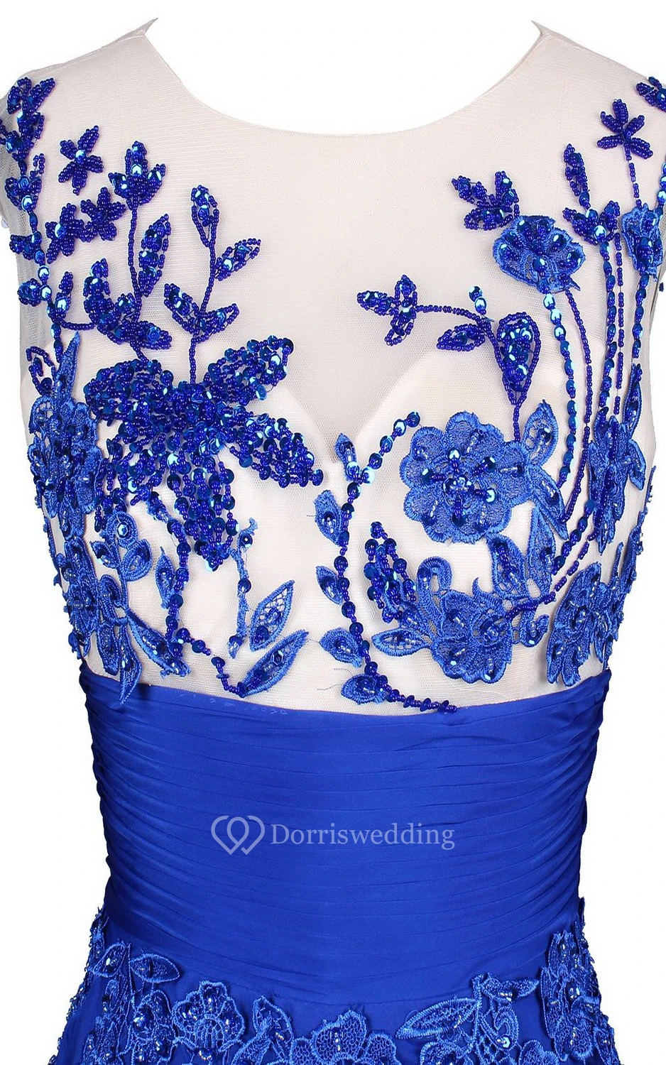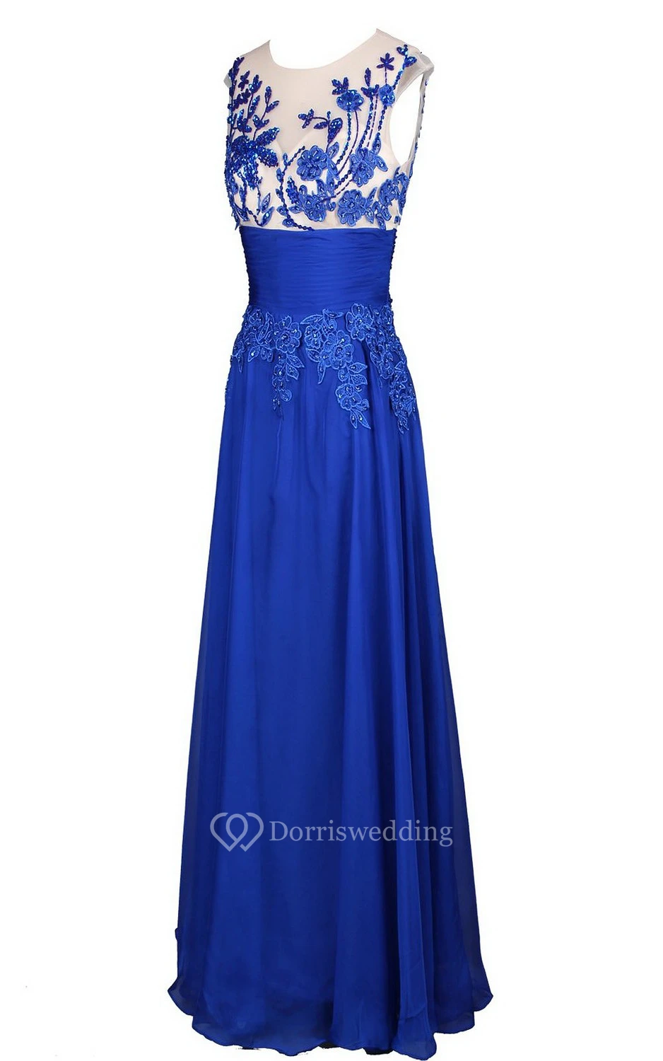 Sleeveless Sequined Appliqued Long Pleated Chiffon Dress