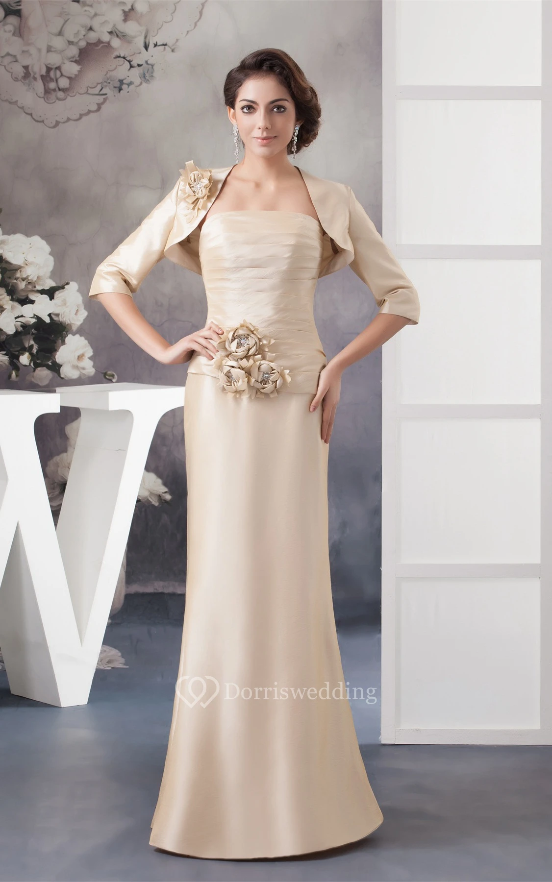 Sleeveless Sheath Ruched Bolero and Dress With Flower