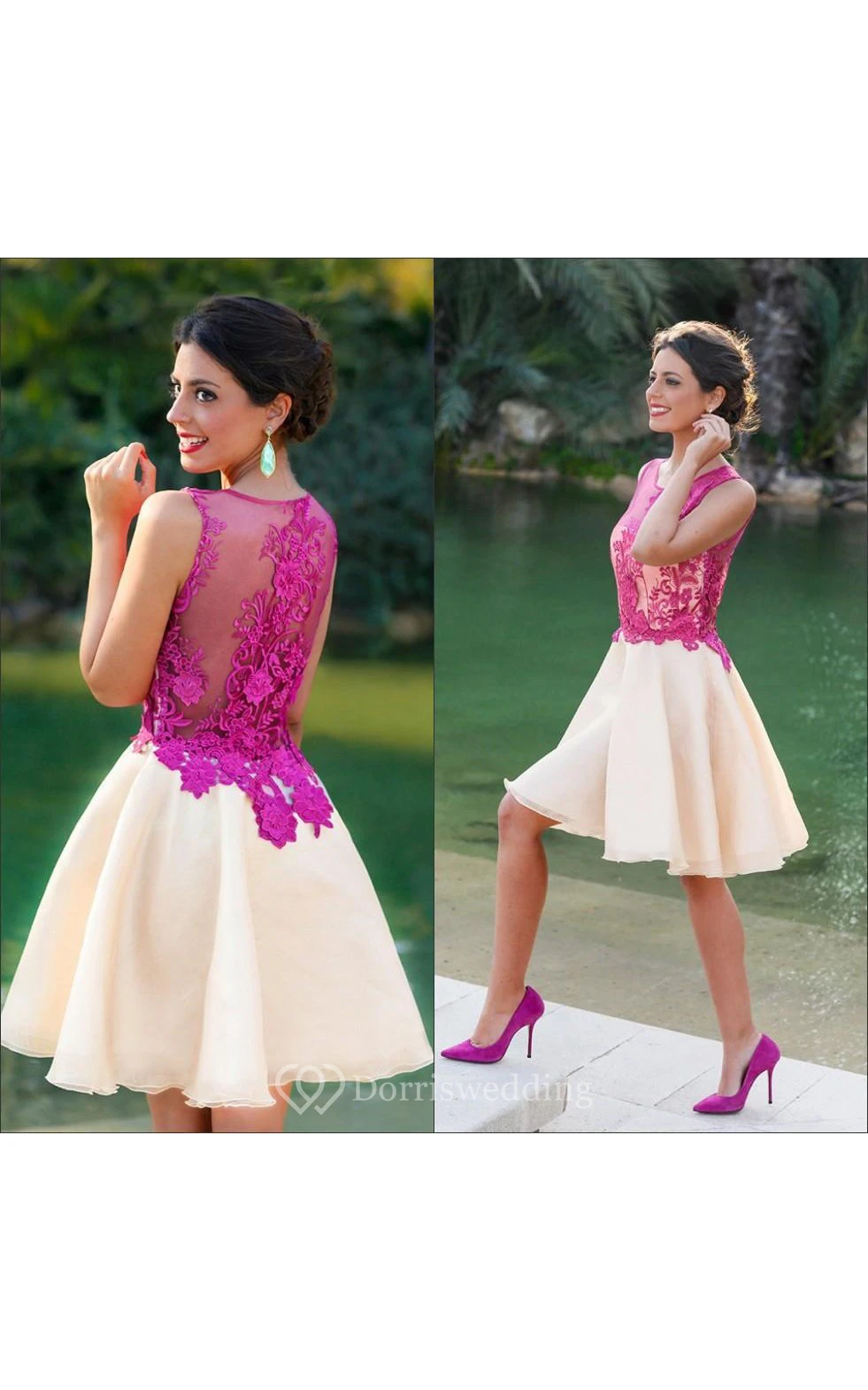 Sleeveless Sheer Chiffon Lace Top Short Formal Prom Party Gowns