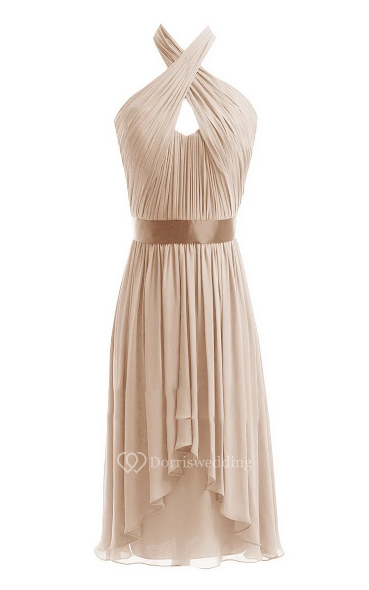 Sleeveless Short Chiffon Dress With Crisscross Neck