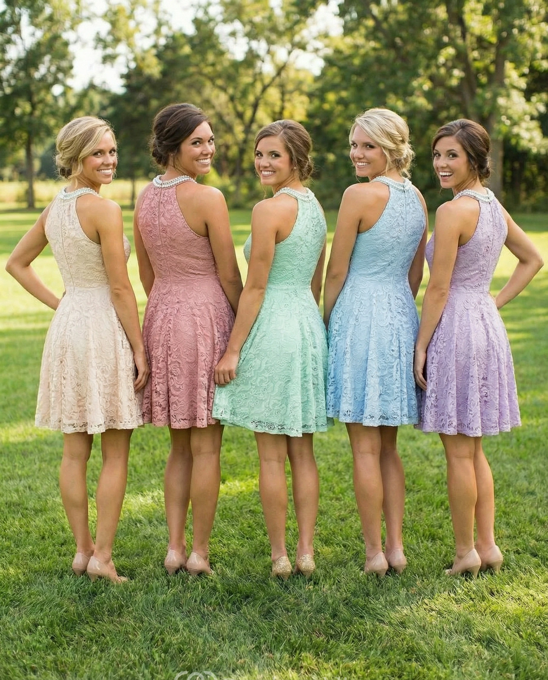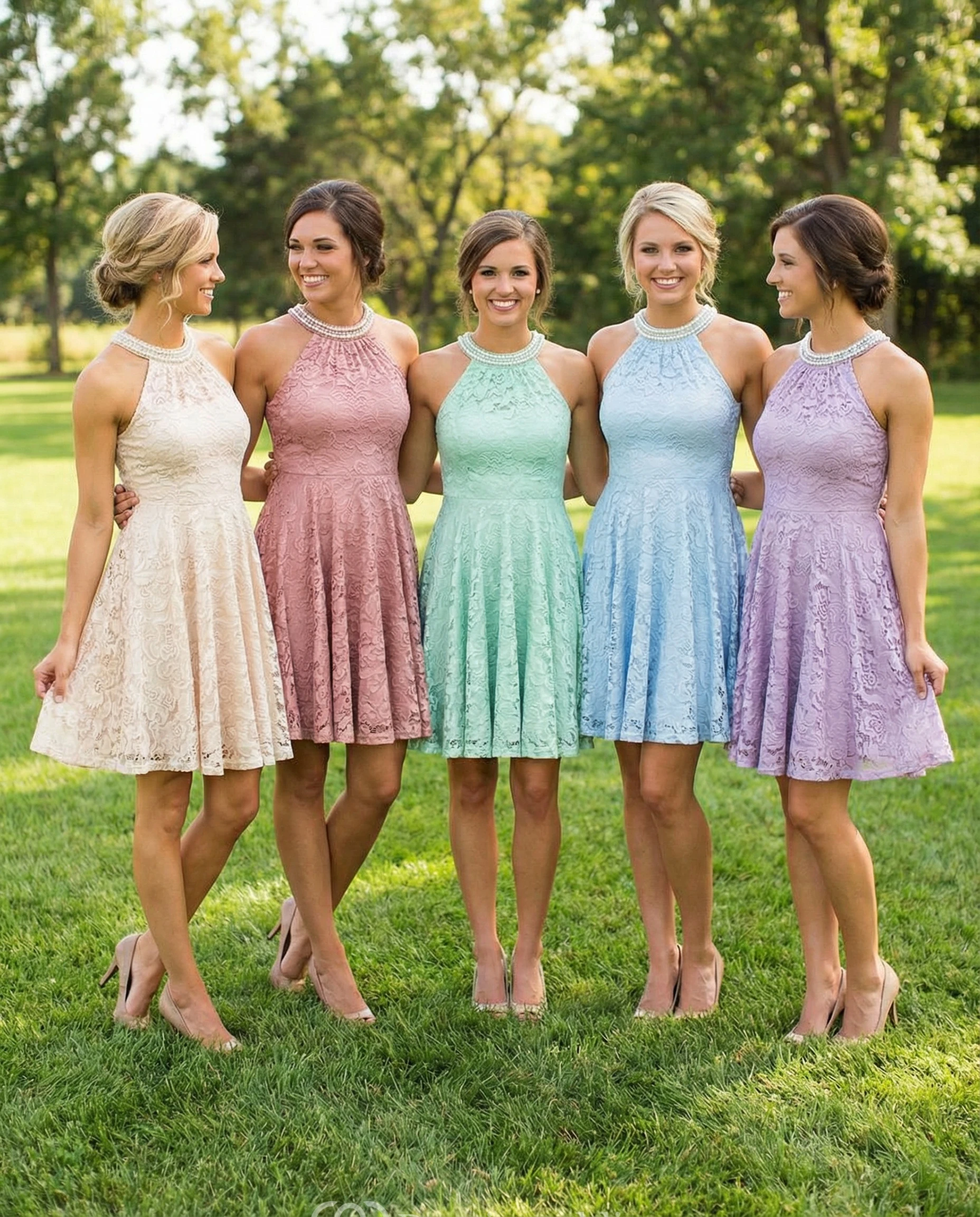Sleeveless Short Lace Empire Waist Bridesmaid Gown
