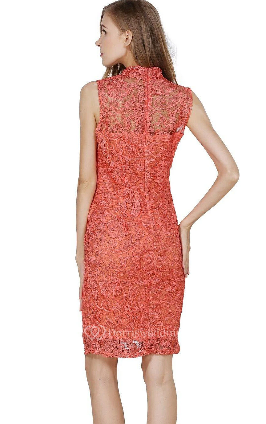 Sleeveless Short Lace Sheath Dress with Illusion Style