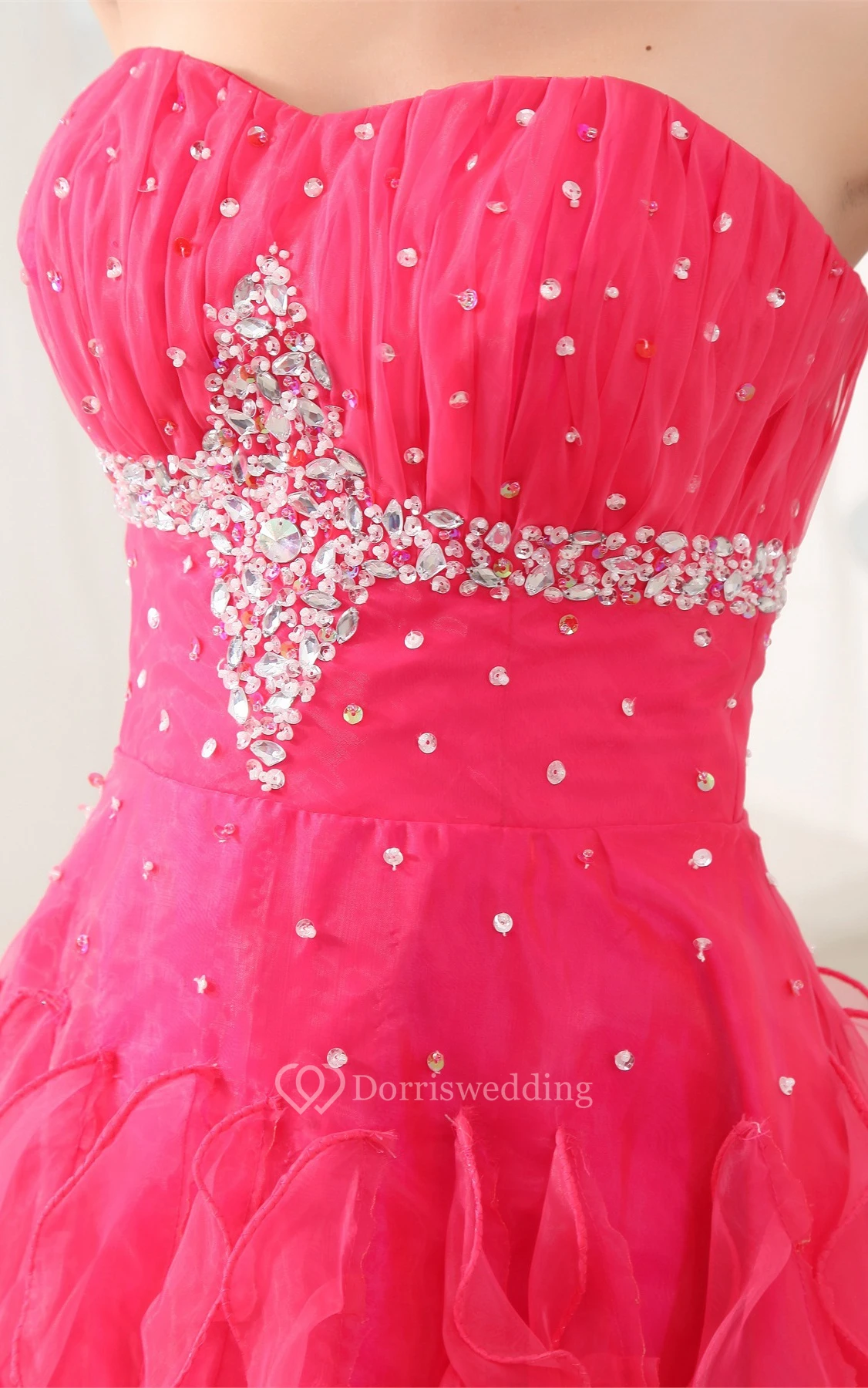 Sleeveless Short-Length A-Line Gown With Crystal Detailing and Ruffles