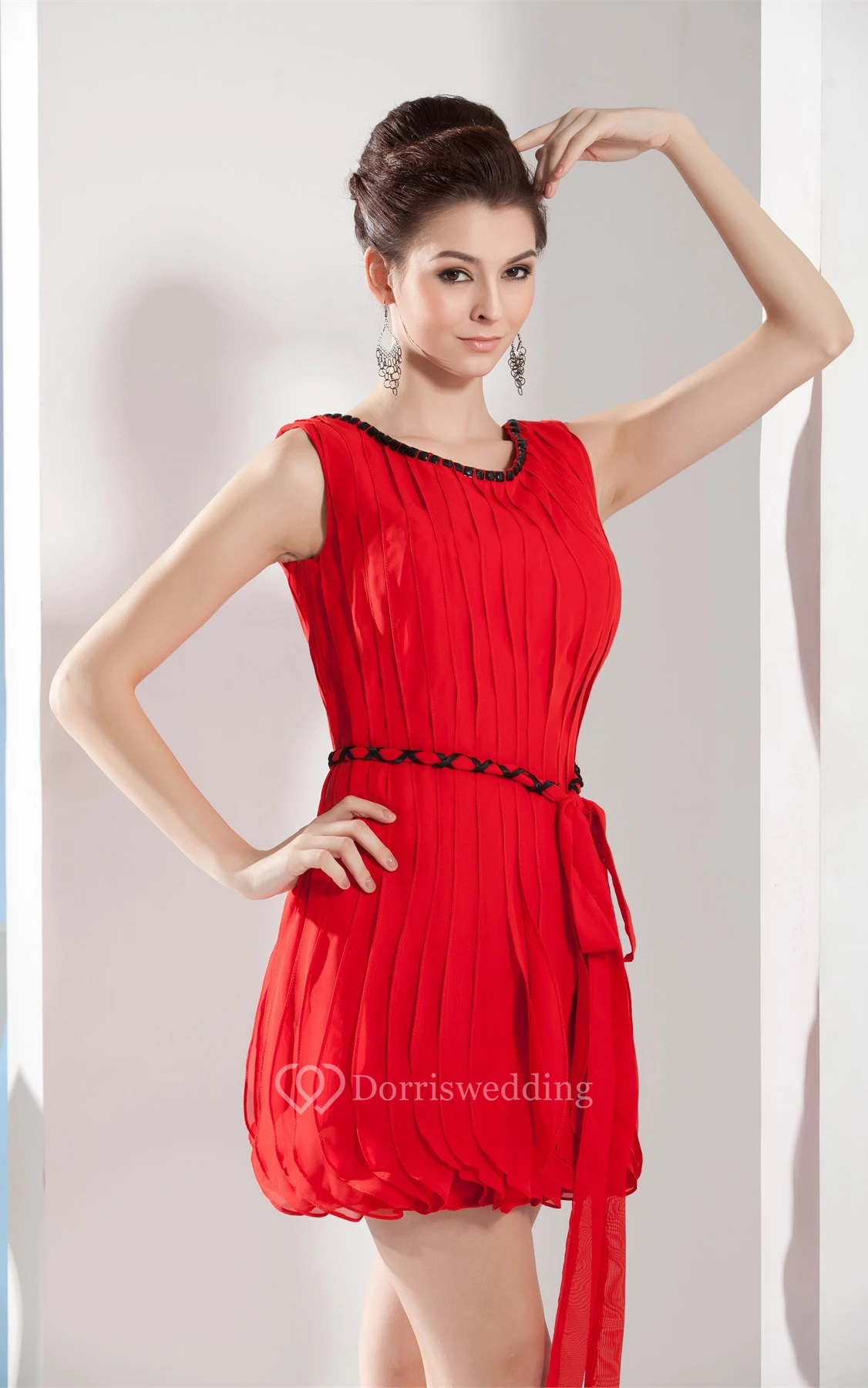 Sleeveless Short Ruched Beading and Dress With Ribbon