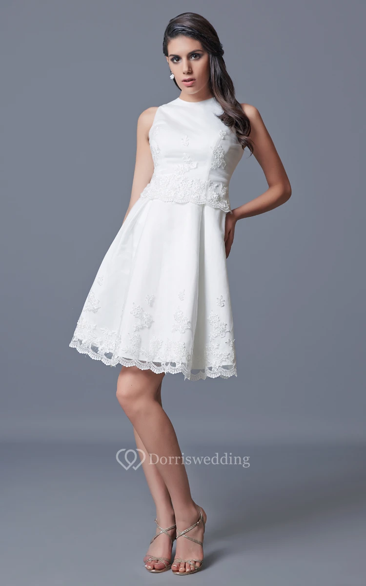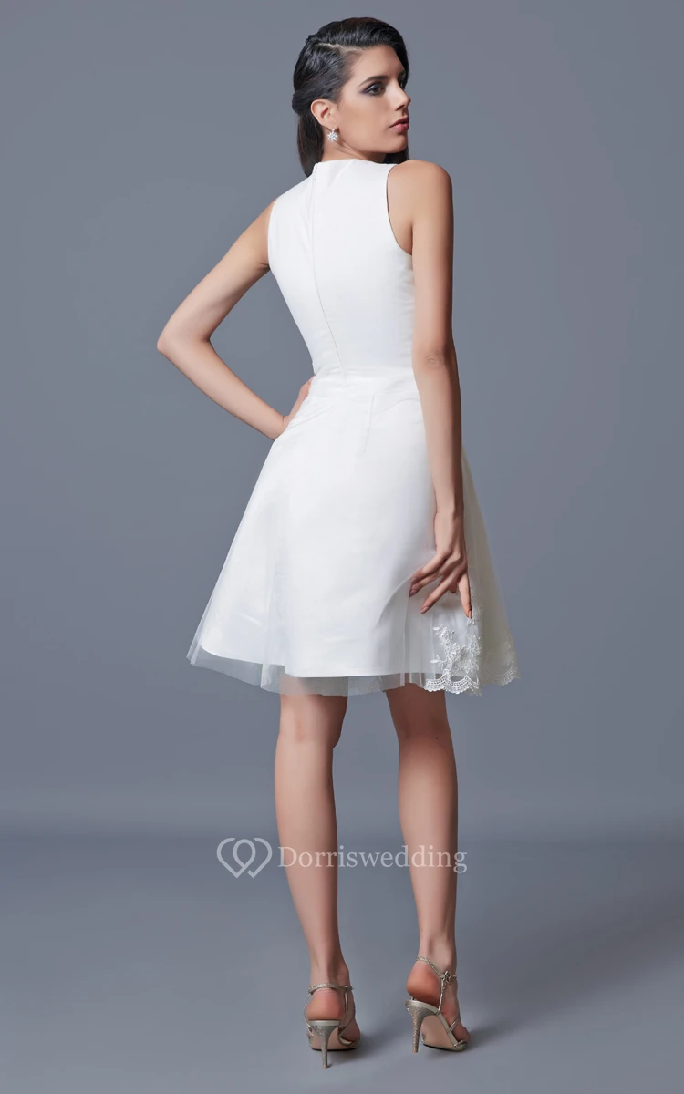 Sleeveless Short Satin Dress With Embroidery