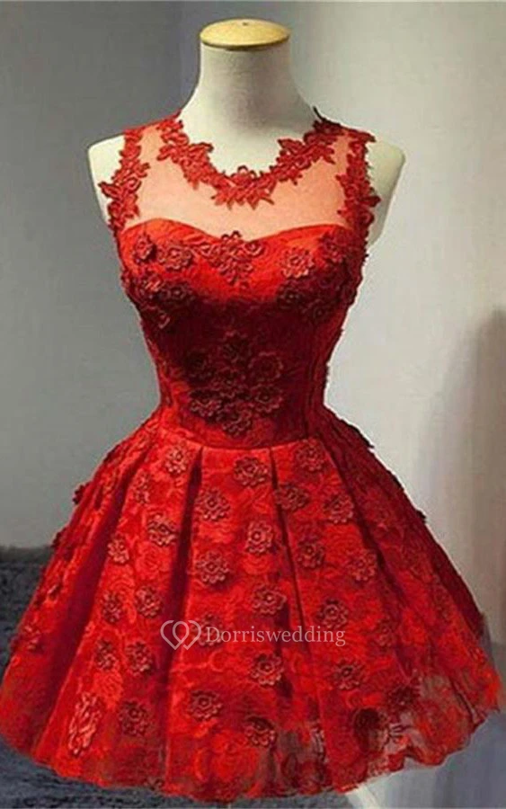 Sleeveless Short v-neck Lace Dress With Pleats