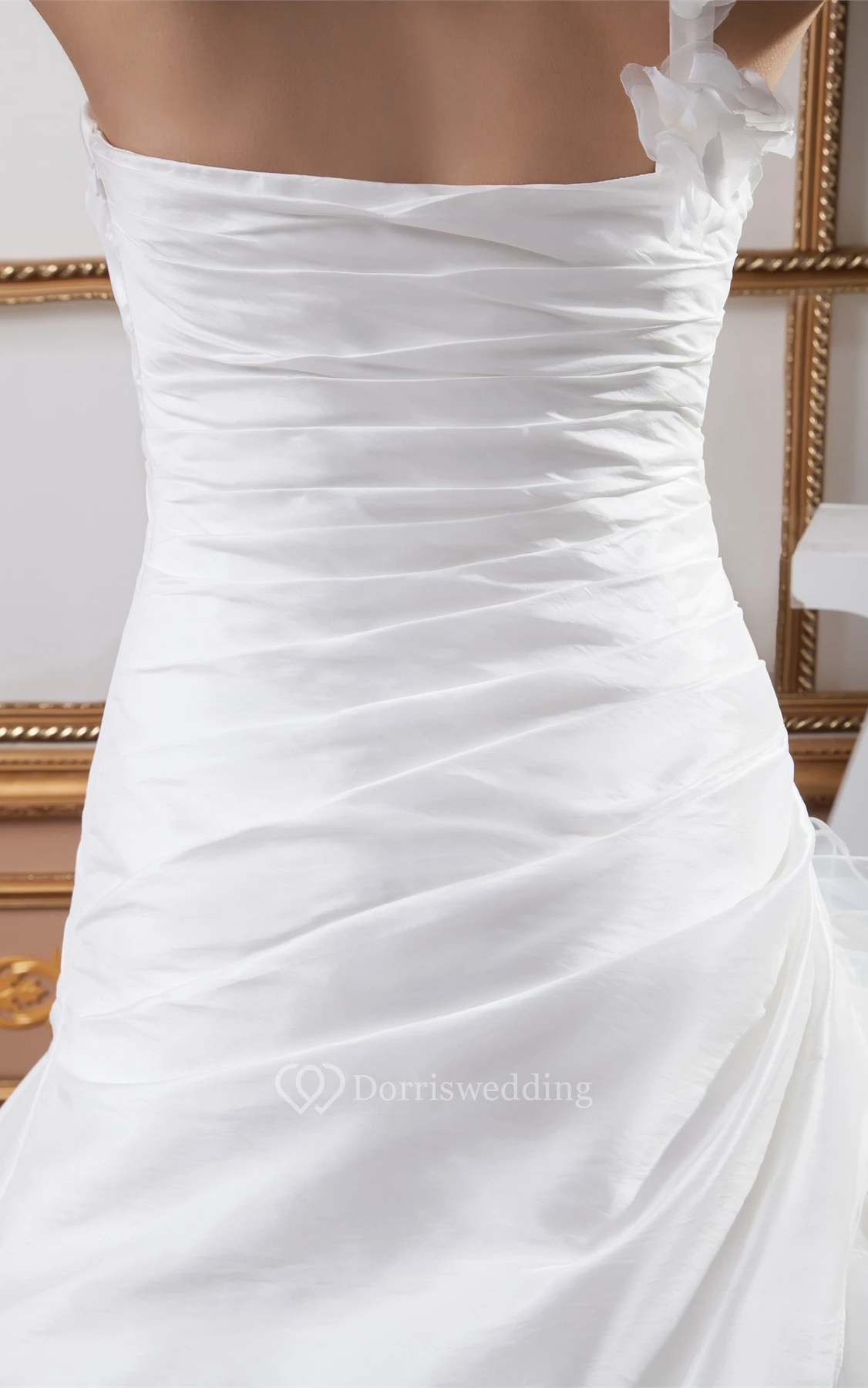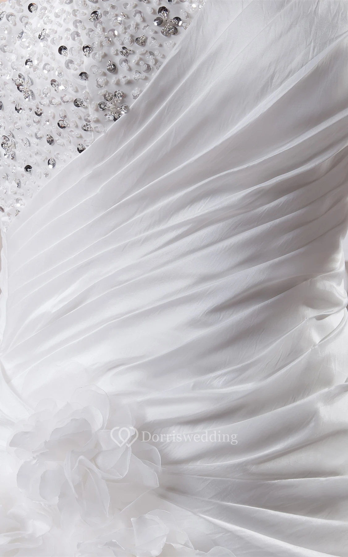 Sleeveless Side-Ruched Ruffles and Ball-Gown With Beading