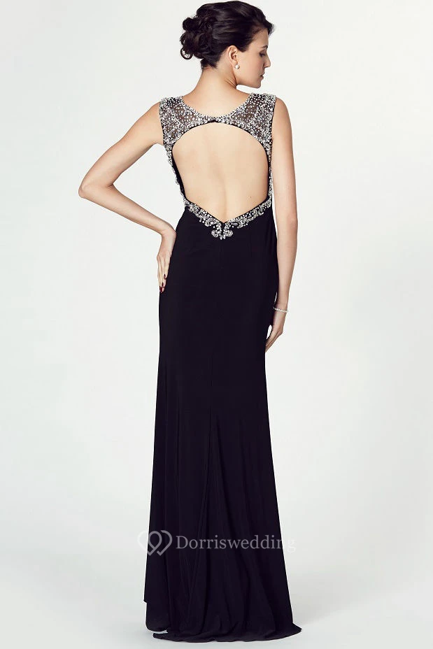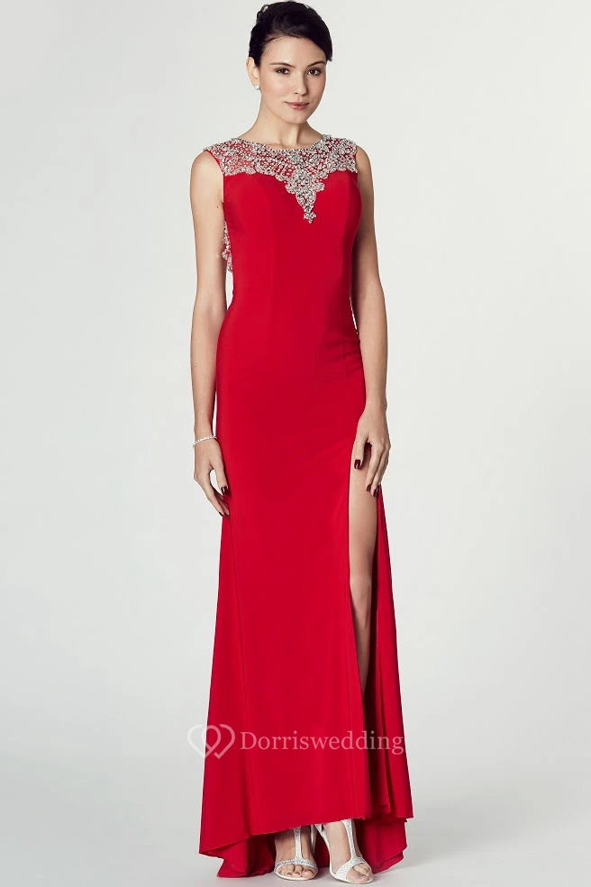 Sleeveless Split-Front Bateau Neck Jersey Prom Dress