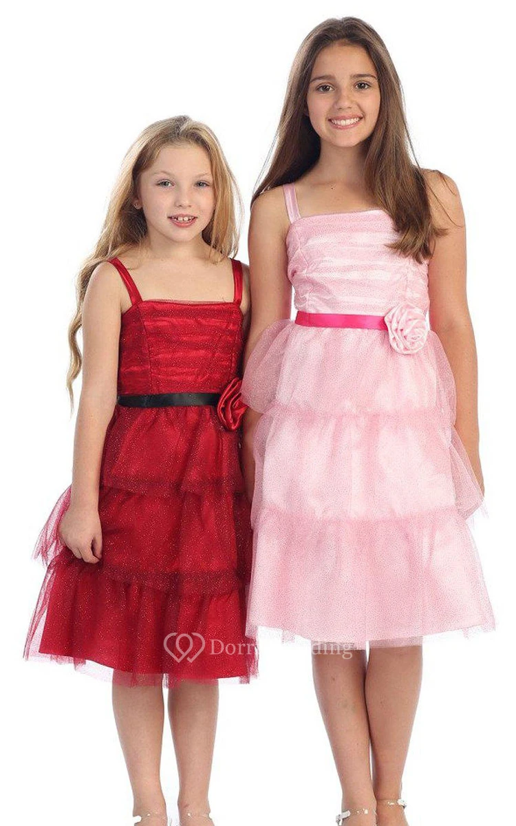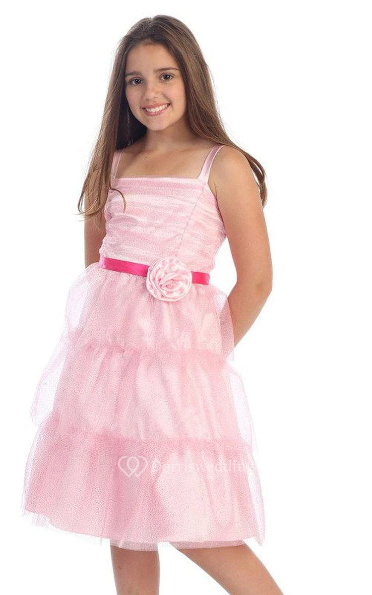 Sleeveless Square-neck Dress With Flower
