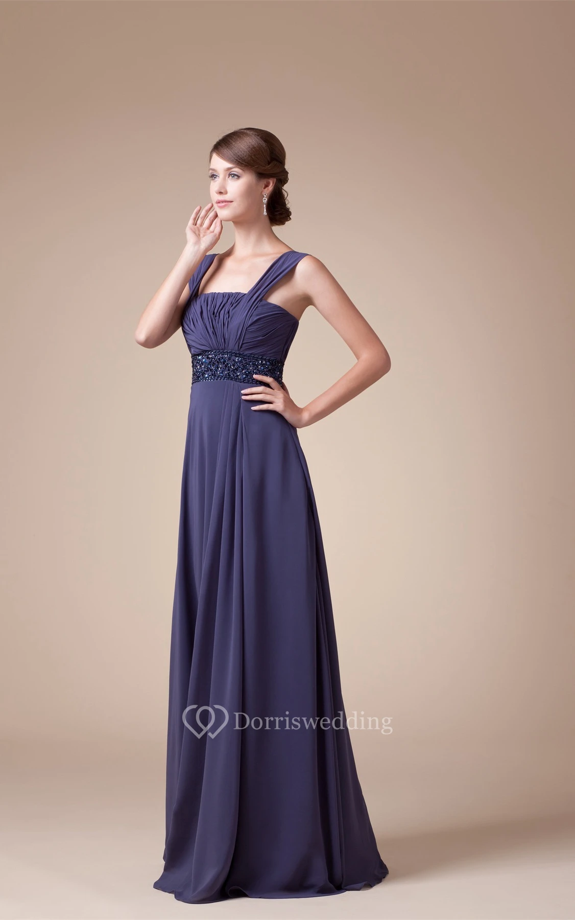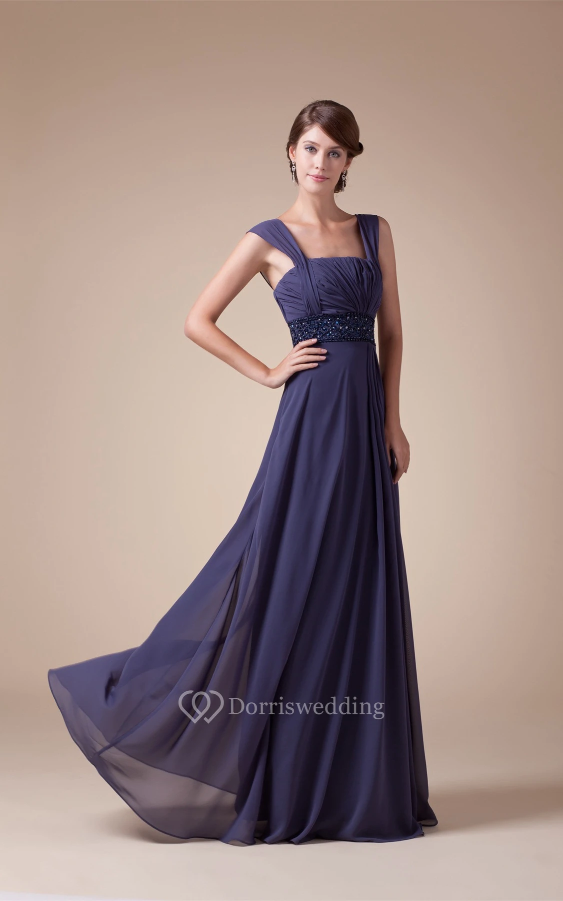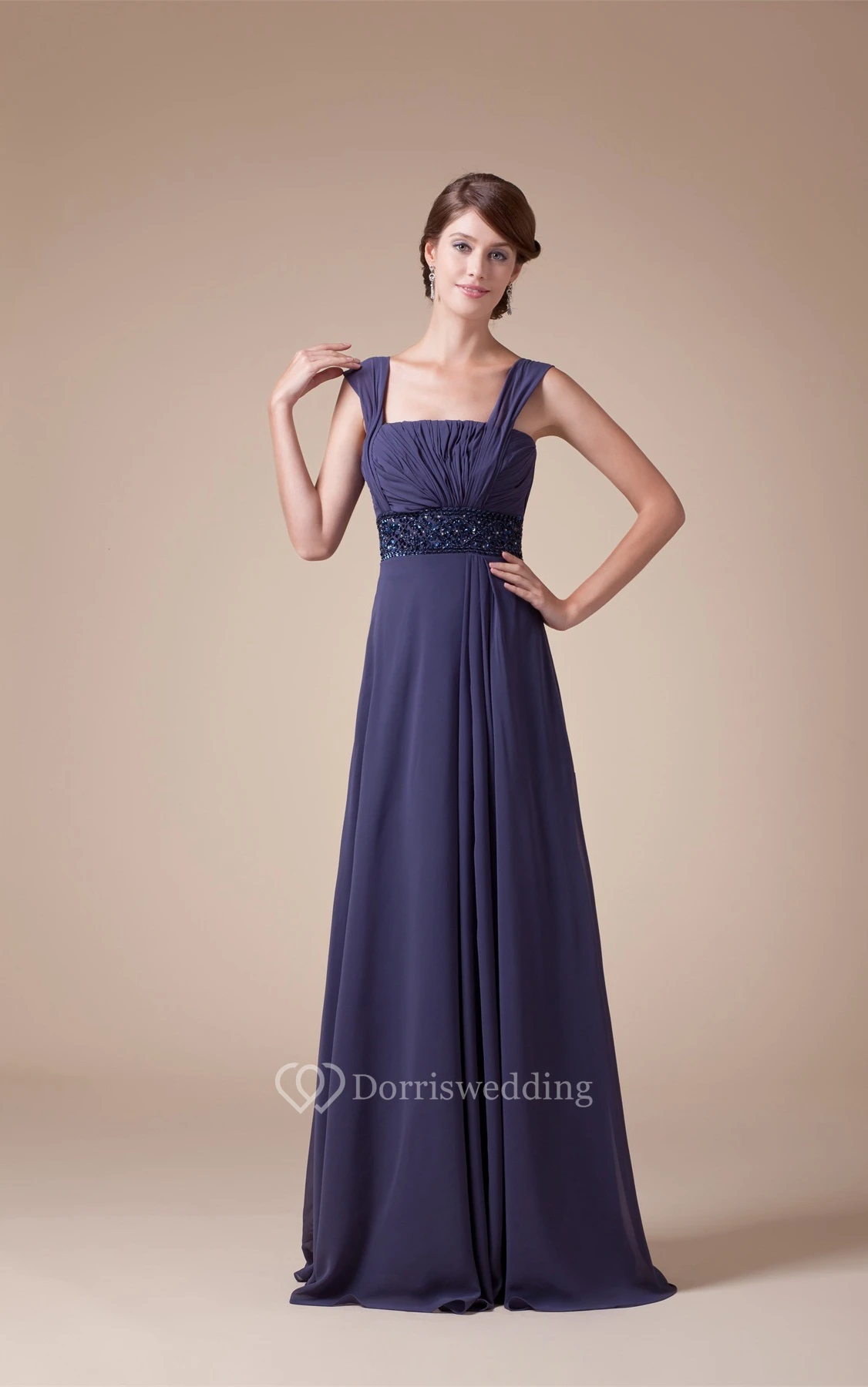 Sleeveless Square Ruched A-Line Gown With Jeweled Empire Waist
