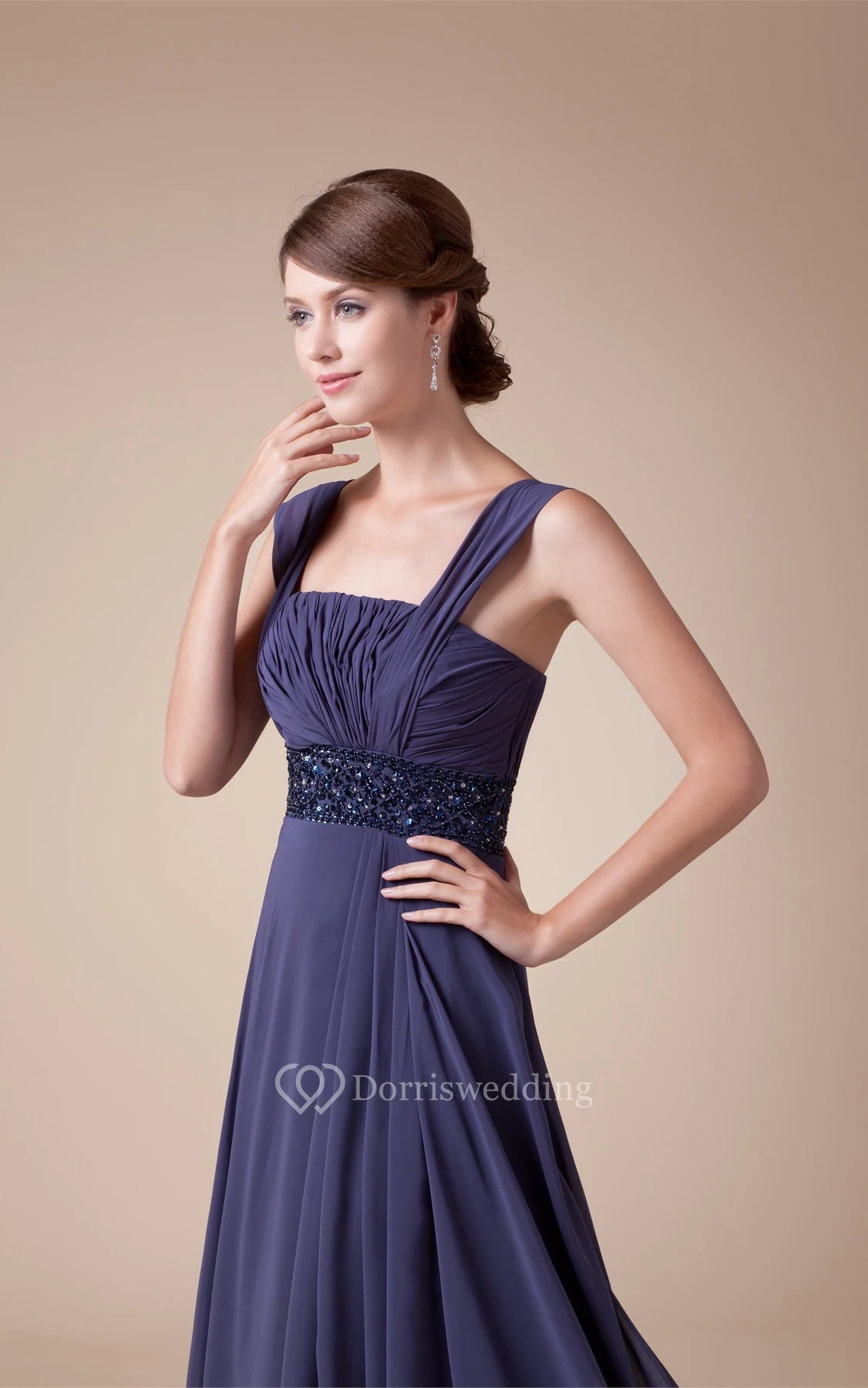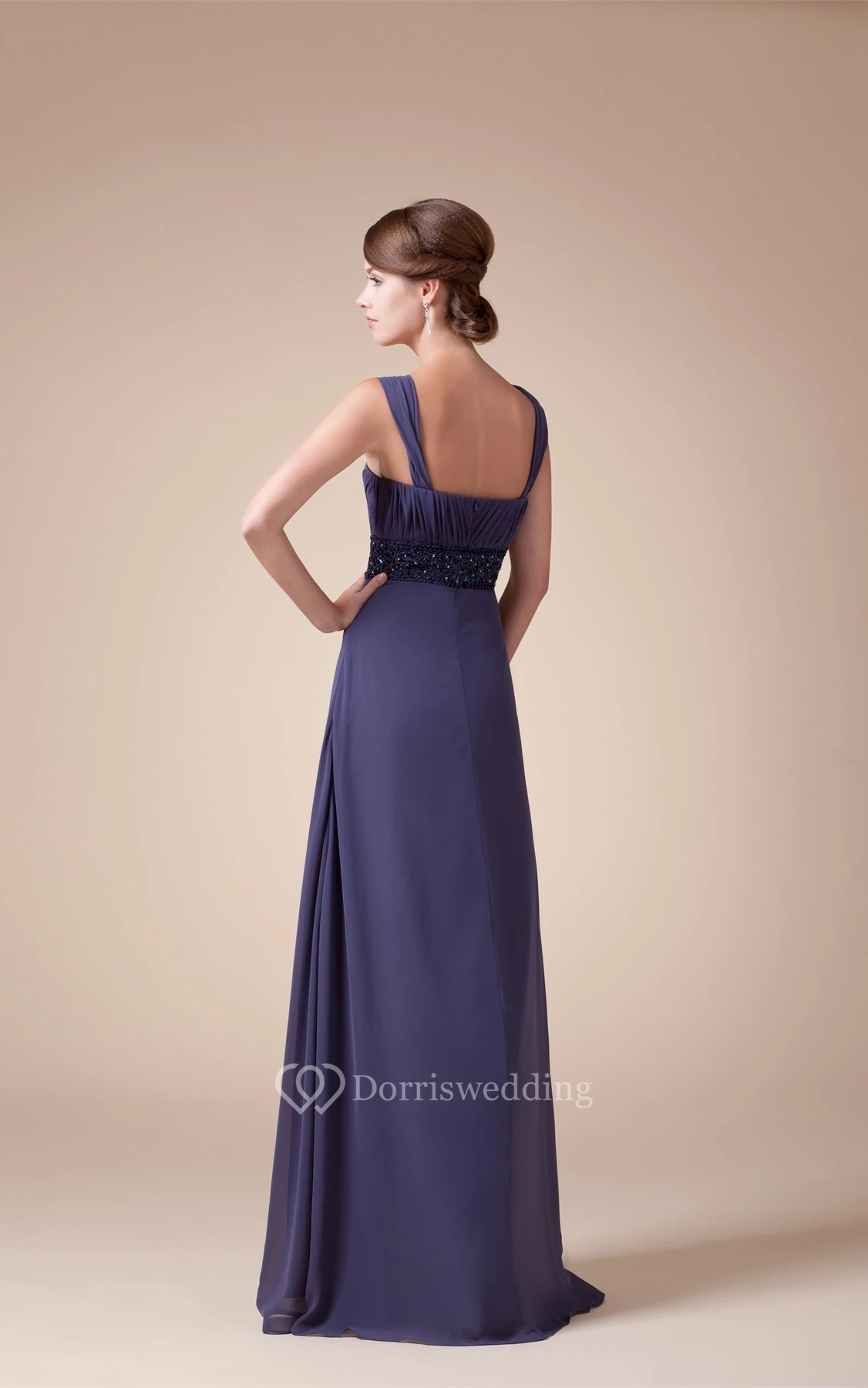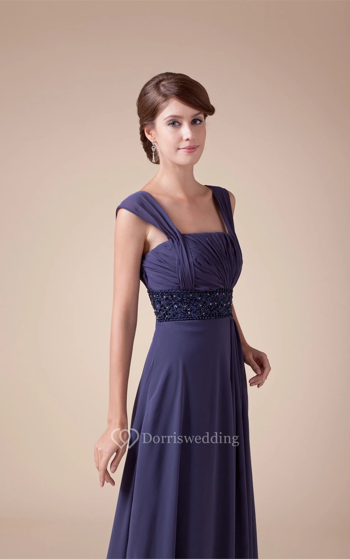 Sleeveless Square Ruched A-Line Gown With Jeweled Empire Waist