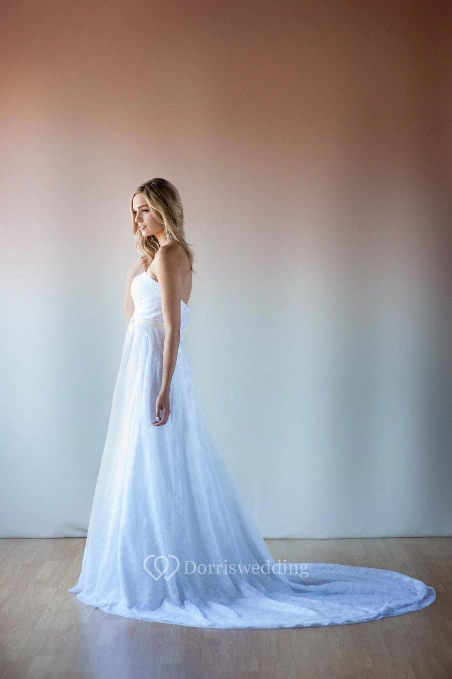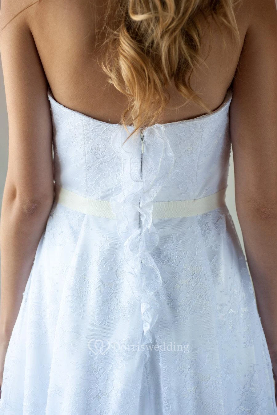 Sleeveless Strapless A-Line Beaded Lace Dress With Open Back
